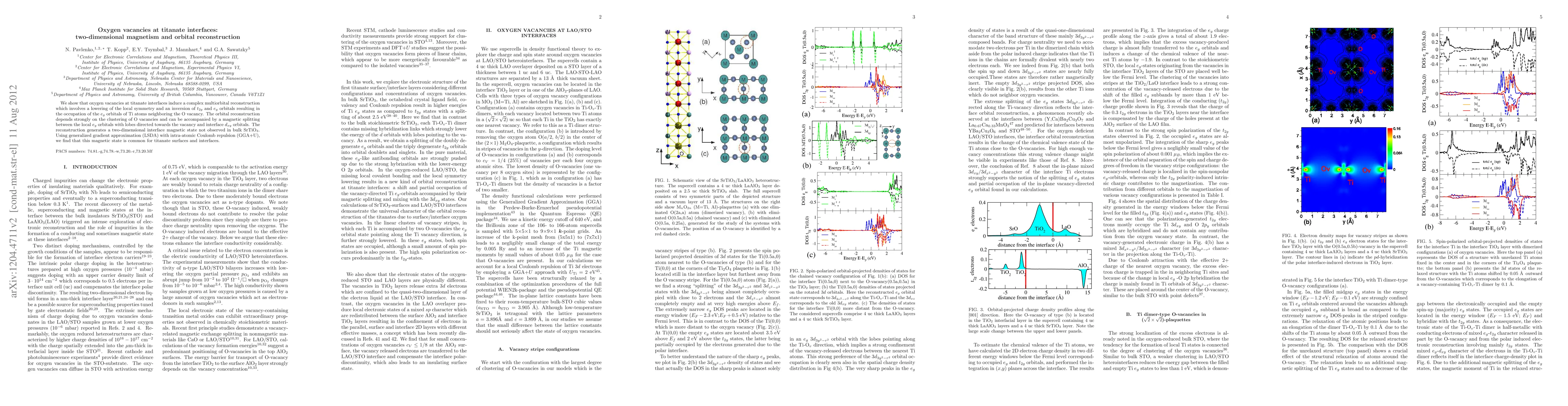 Summary: Oxygen vacancies at titanate interfaces induce a multiorbital reconstruction leading to a two-dimensional magnetic state, characterized by the inversion of t2g and eg orbitals and magnetic splitting, which is not present in the bulk SrTiO3. This state is common across titanate surfaces and interfaces, as revealed by GGA+U calculations.