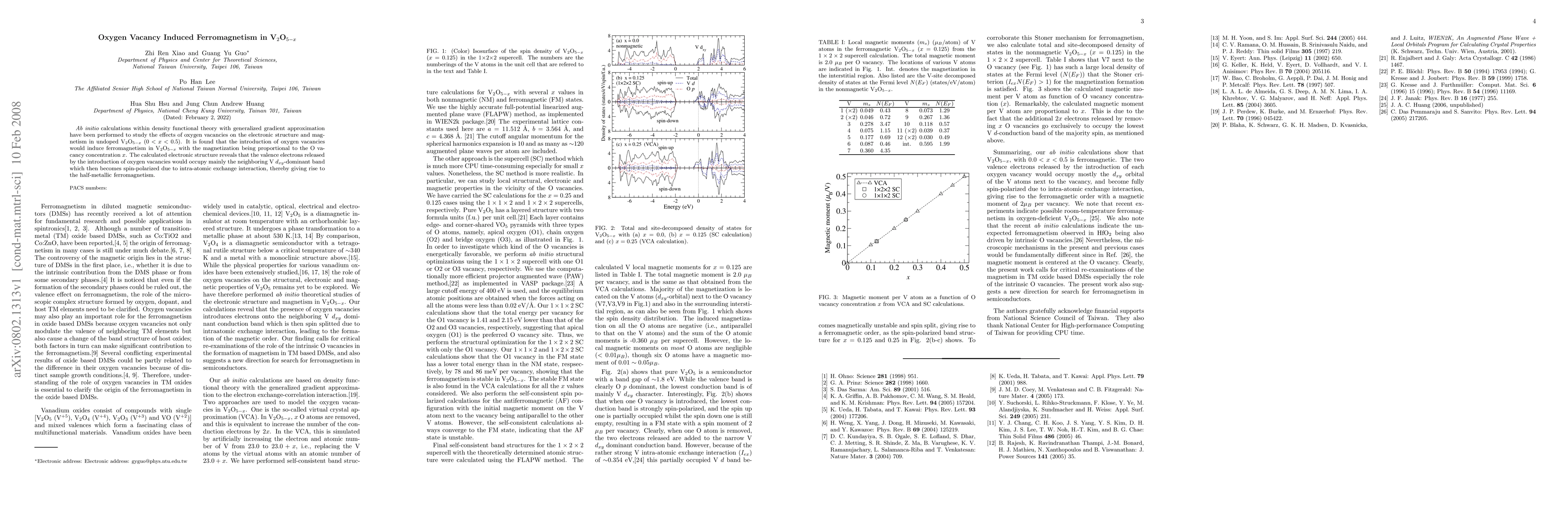 Research found that introducing oxygen vacancies into V2O5-x material induces ferromagnetism, with magnetization proportional to the O vacancy concentration. This is due to valence electrons occupying a spin-polarized band in the material.