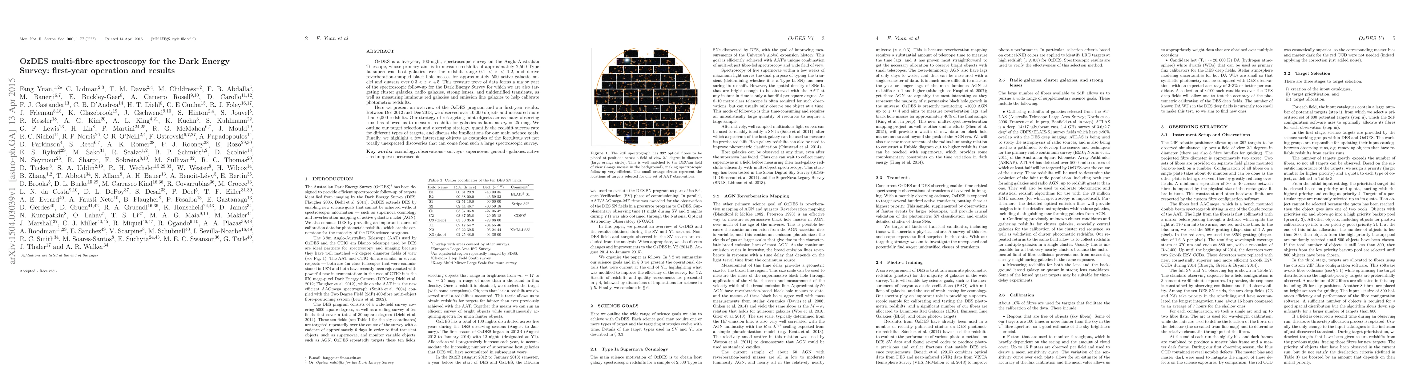 OzDES conducted its first-year operations on the Anglo-Australian Telescope, measuring over 6,000 redshifts for more than 10,000 objects, including Type Ia supernovae host galaxies and active galactic nuclei. The survey's retargeting strategy enabled redshift measurements for galaxies as faint as m_r=25 mag, contributing significantly to the Dark Energy Survey's goals.