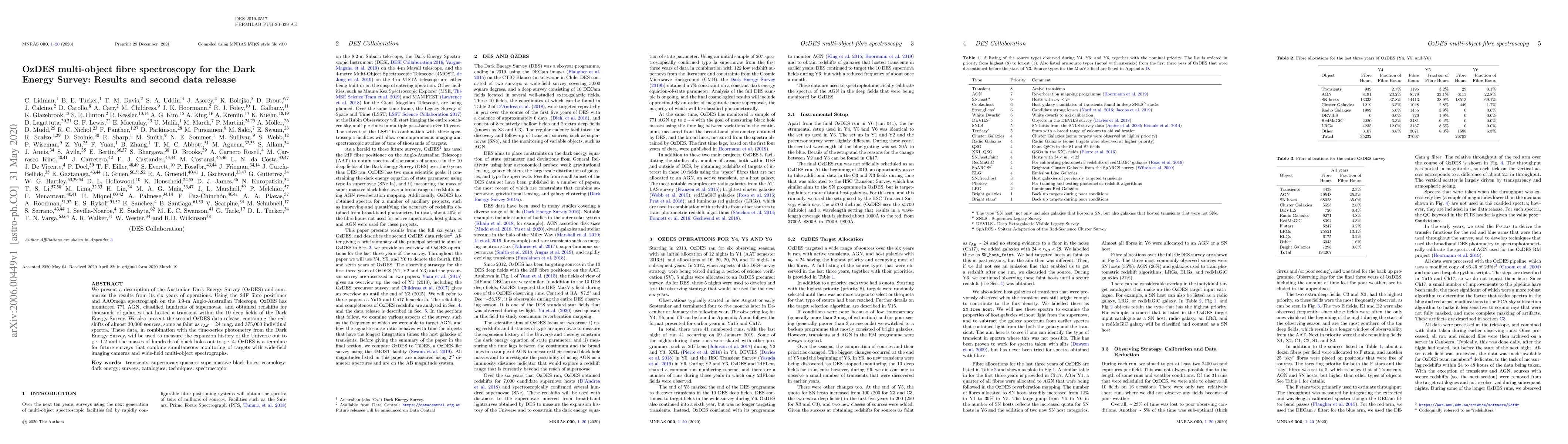 OzDES, using the 2dF fibre positioner and AAOmega spectrograph, has monitored 771 AGN, classified supernovae, and obtained redshifts for thousands of galaxies over six years. The second data release includes redshifts for nearly 30,000 sources and 375,000 spectra, aiding in measuring the Universe's expansion and black hole masses.