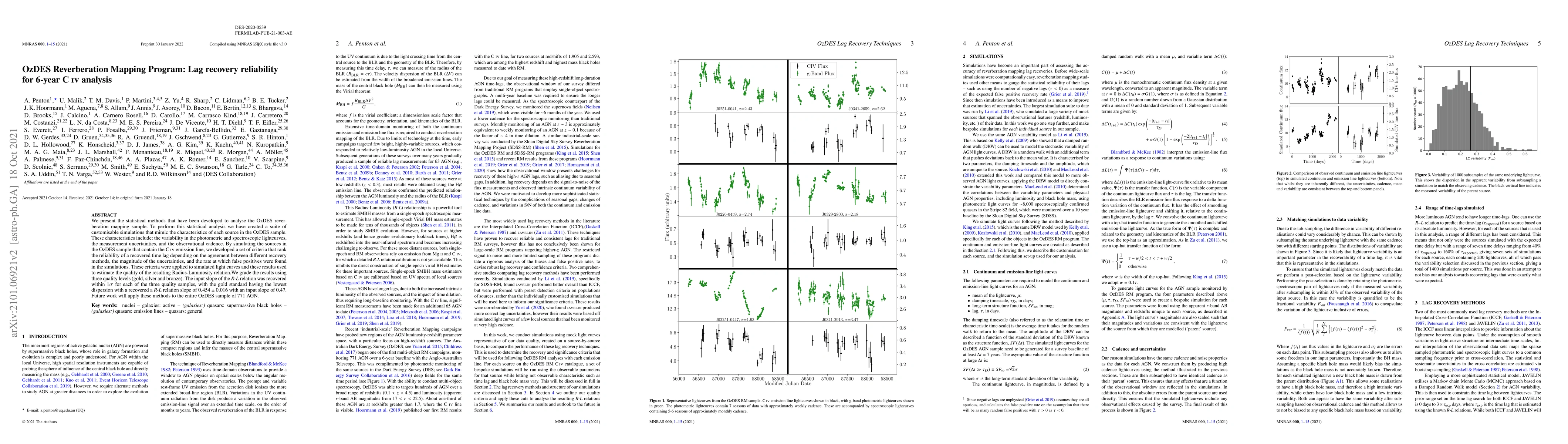 This study develops statistical methods to analyze the OzDES reverberation mapping sample, focusing on lag recovery reliability for 6-year CIV analysis, with a gold standard R-L relation slope of $0.454 gm 0.016$.