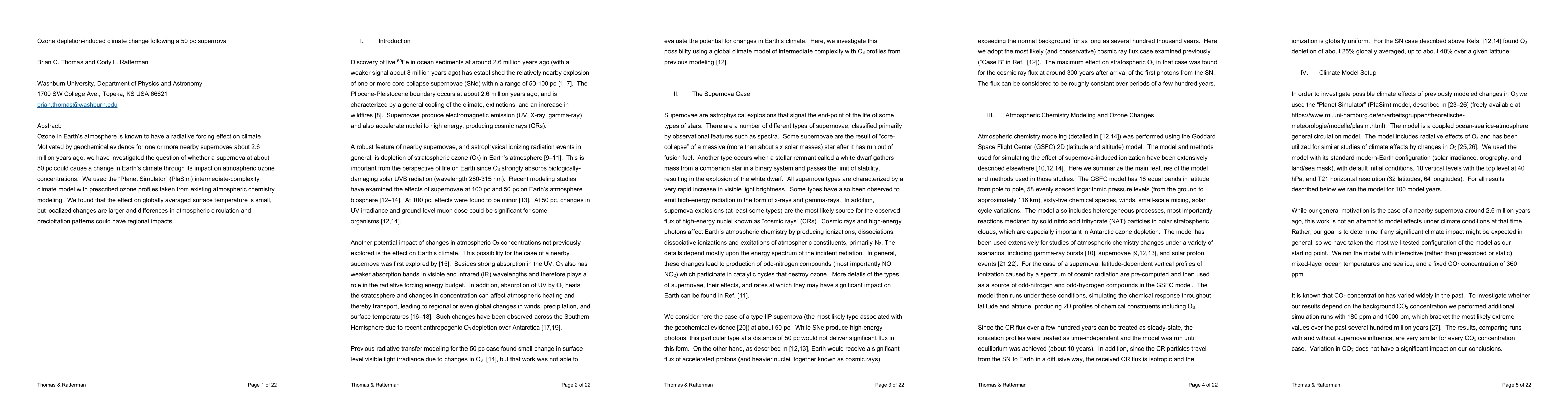 The implementation and use of prescribed O3 profiles in the PlaSim climate model to study the climate impact of a nearby supernova.