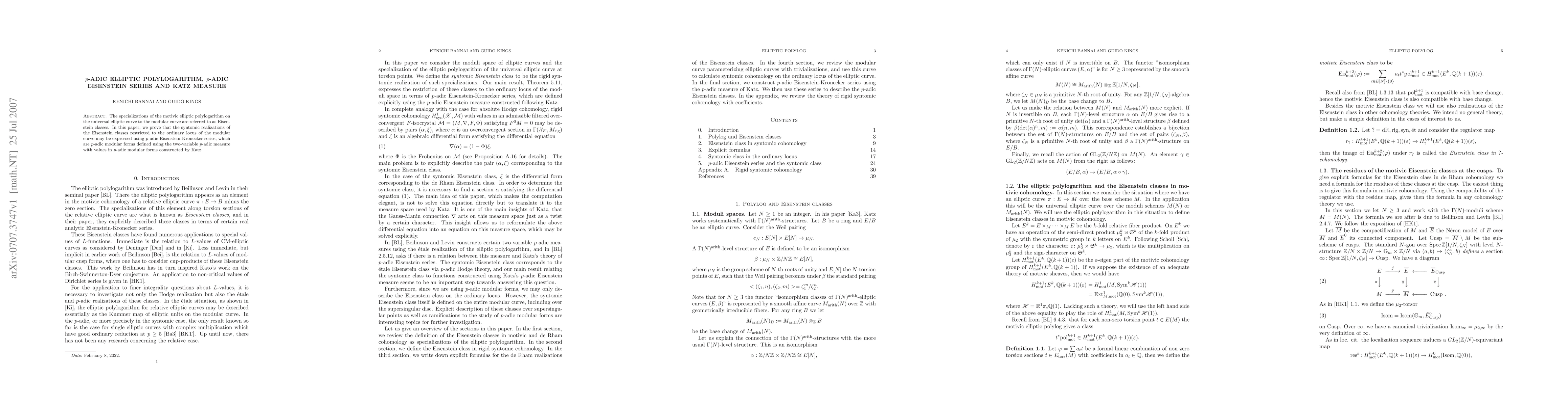 This paper demonstrates that the syntomic realization of motivic Eisenstein classes on the ordinary locus of the modular curve can be expressed via p-adic Eisenstein-Kronecker series, leveraging the two-variable p-adic measure introduced by Katz. This provides a significant advancement in understanding special values of L-functions.