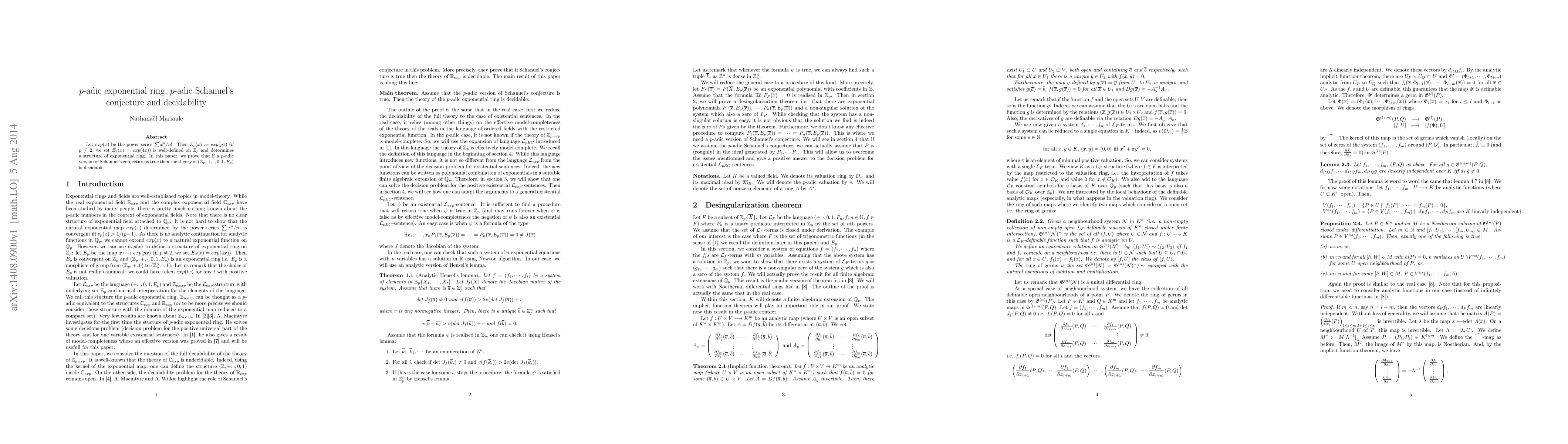 This paper establishes that a p-adic version of Schanuel's conjecture, if valid, implies the decidability of the theory for the exponential ring structure on the p-adic integers, defined by the function E_p(x) = exp(px).