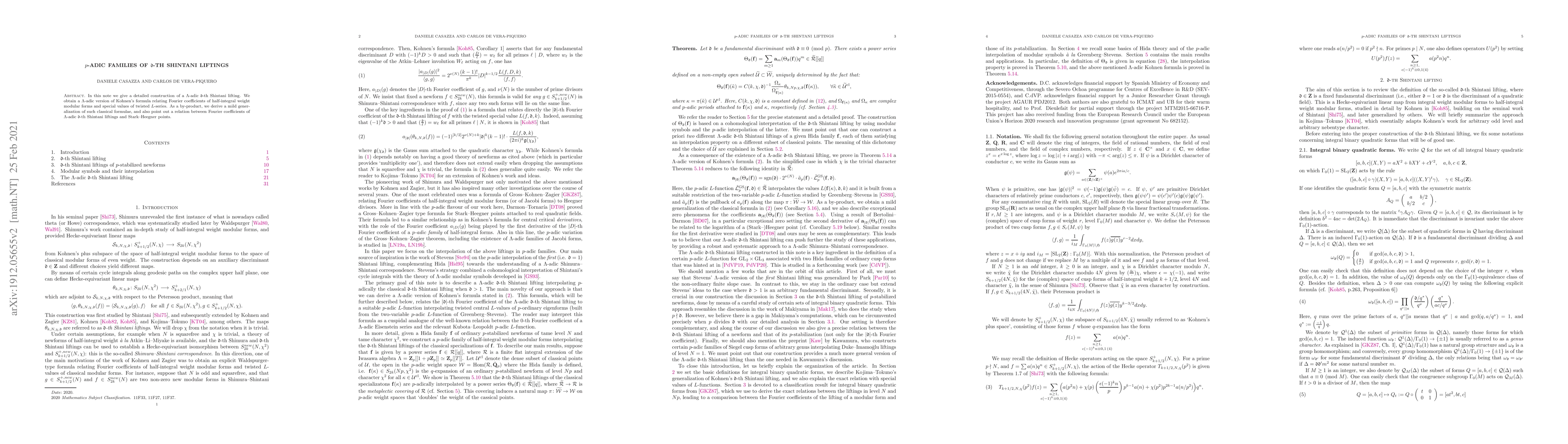 This paper constructs a $\Lambda$-adic $\mathfrak{d}$-th Shintani lifting and derives a $\Lambda$-adic version of Kohnen's formula connecting Fourier coefficients of modular forms and L-series. It also generalizes classical formulae and reveals a connection between Fourier coefficients and Stark--Heegner points.