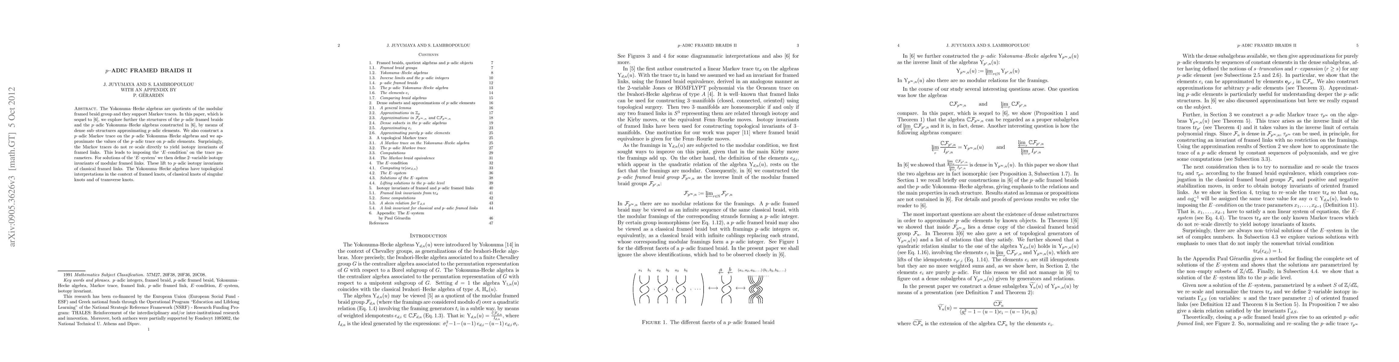 The Yokonuma-Hecke algebras are quotients of the modular framed braid group and they support Markov traces. In this paper, which is sequel to Juyumaya and Lambropoulou (2007), we explore further the structures of the $p$-adic framed braids and the $p$-adic Yokonuma-Hecke algebras constructed in Juyumaya and Lambropoulou (2007), by means of dense sub-structures approximating $p$-adic elements. We also construct a $p$-adic Markov trace on the $p$-adic Yokonuma-Hecke algebras and we approximate the values of the $p$-adic trace on $p$-adic elements. Surprisingly, the Markov traces do not re-scale directly to yield isotopy invariants of framed links. This leads to imposing the `$E$-condition' on the trace parameters. For solutions of the `$E$-system' we then define 2-variable isotopy invariants of modular framed links. These lift to $p$-adic isotopy invariants of classical framed links. The Yokonuma-Hecke algebras have topological interpretations in the context of framed knots, of classical knots of singular knots and of transverse knots.