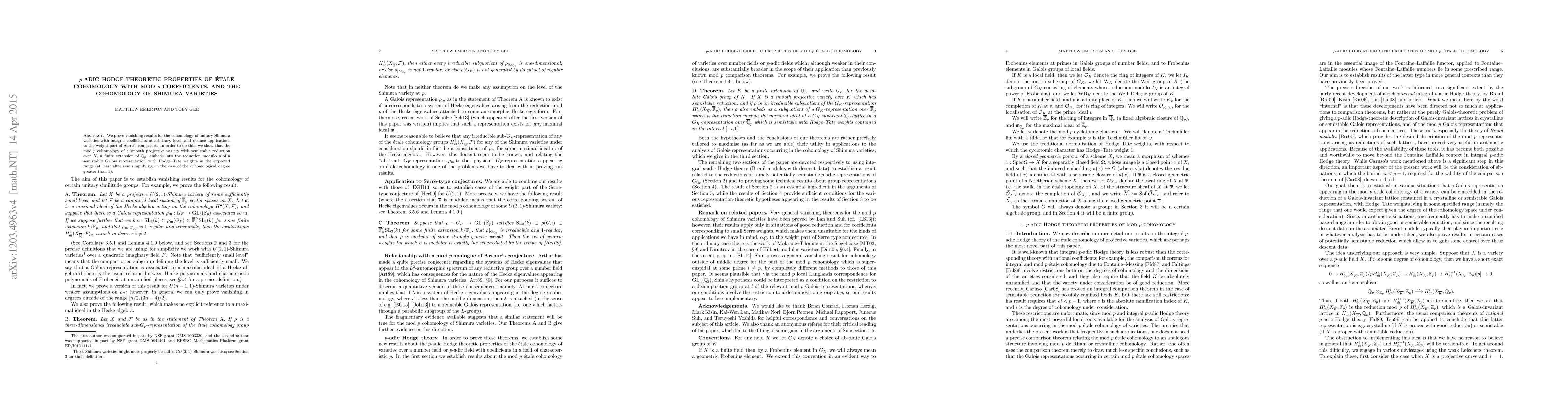 This paper establishes an embedding of mod p cohomology of certain varieties into reduced p-adic Galois representations with Hodge-Tate weights, proving refinements with descent data. It applies these results to unitary Shimura varieties, providing vanishing results and insights into the weight part of Serre's conjecture.
