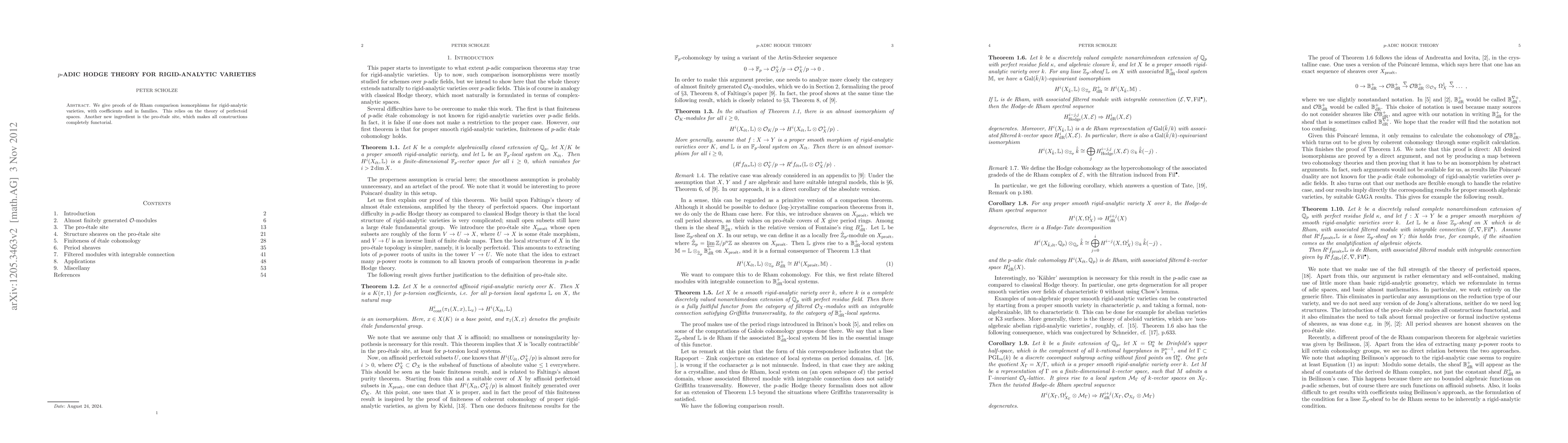 This paper proves de Rham comparison isomorphisms for rigid-analytic varieties using perfectoid spaces and introduces the pro-etale site to ensure fully functorial constructions.