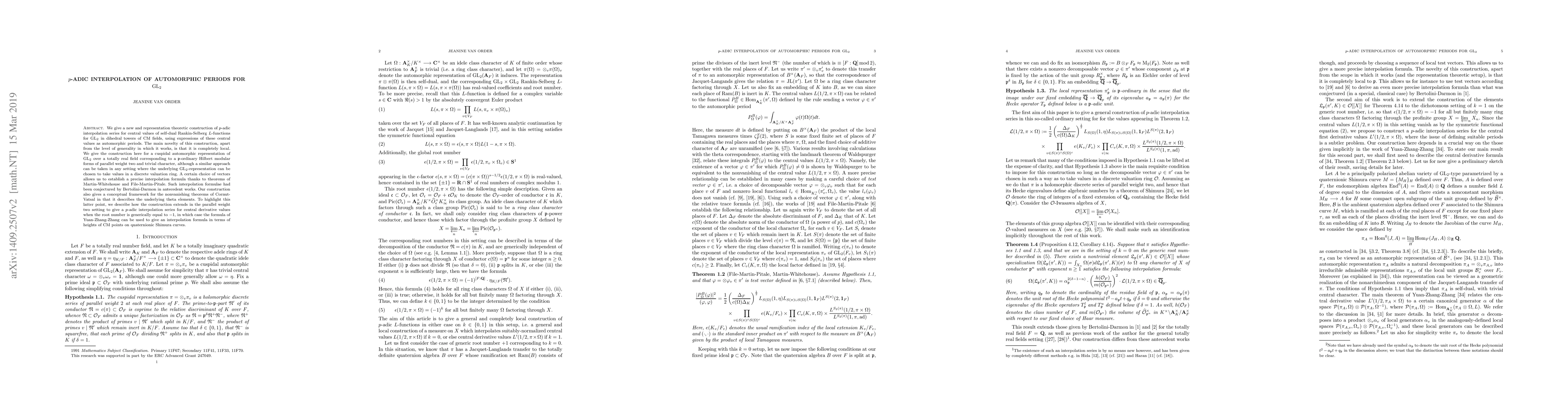 This paper presents a novel representation-theoretic construction for $p$-adic interpolation series for central values of self-dual Rankin-Selberg $L$-functions for $\operatorname{GL}_2$, utilizing automorphic periods and local methods. The approach extends to $p$-adic interpolation for central derivative values and supports nonvanishing theorems through the framework of theta elements.