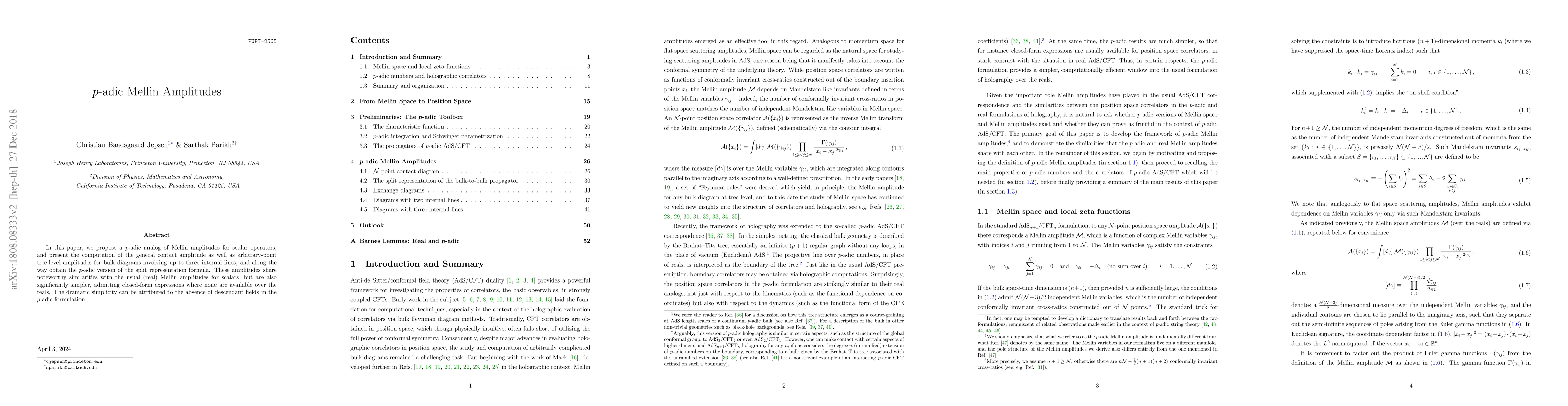 A new formulation of Mellin amplitudes for scalar operators using $p$-adic analysis is presented.