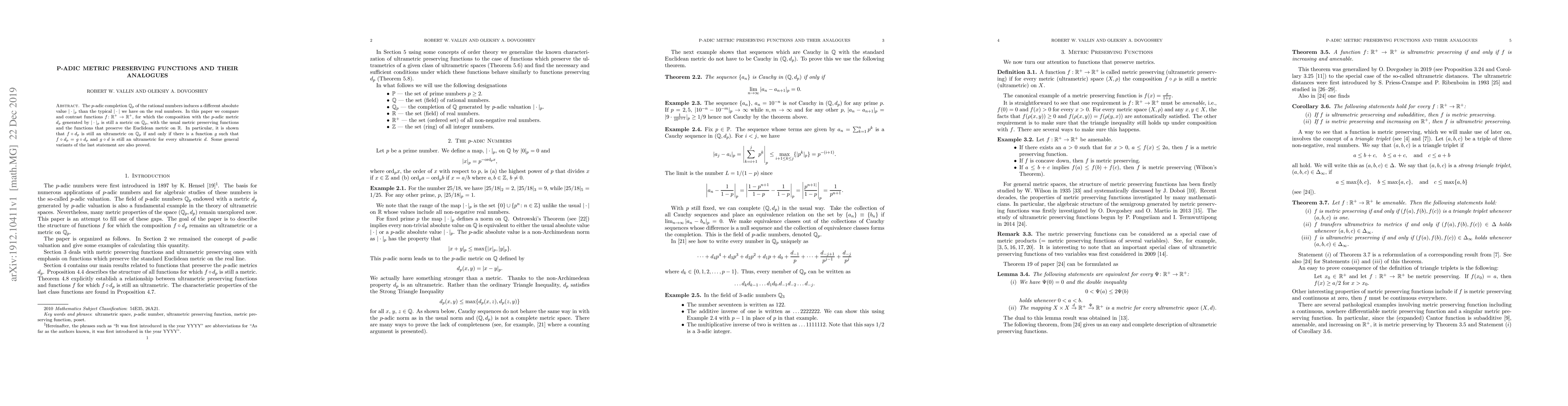 This paper investigates functions that preserve the $p$-adic metric on $\mathbb{Q}_p$ and compares them to functions that preserve the usual Euclidean metric on $\mathbb{R}$. It demonstrates that a function $f$ preserves the $p$-adic metric if and only if it can be expressed as a composition of the $p$-adic metric with another metric-preserving function.