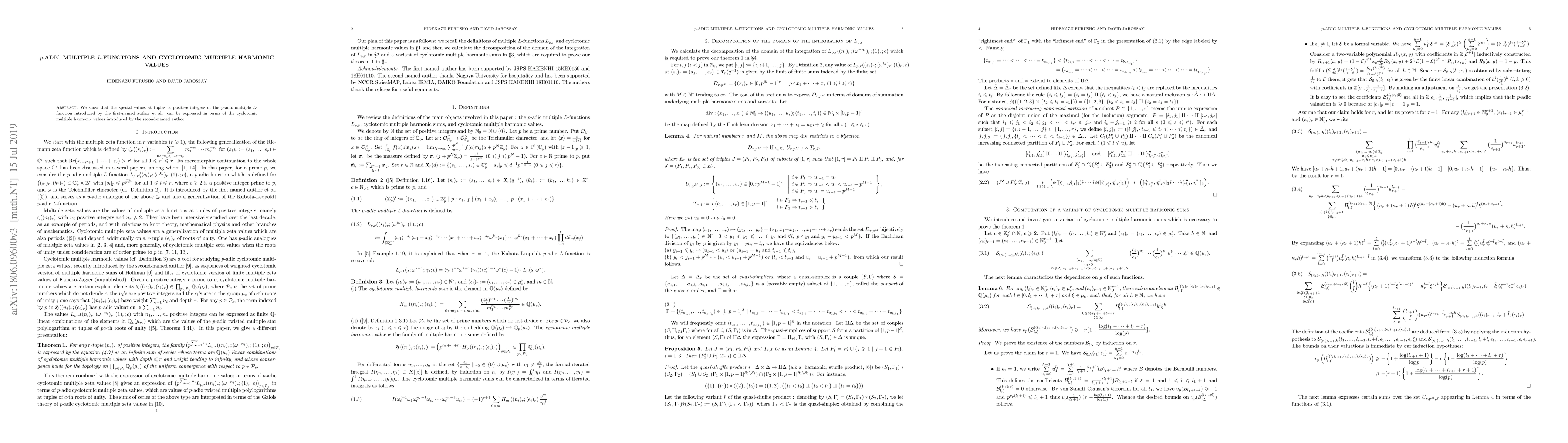 This paper demonstrates a connection between the special values of $p$-adic multiple $L$-functions and cyclotomic multiple harmonic values, showing that the former can be expressed in terms of the latter.
