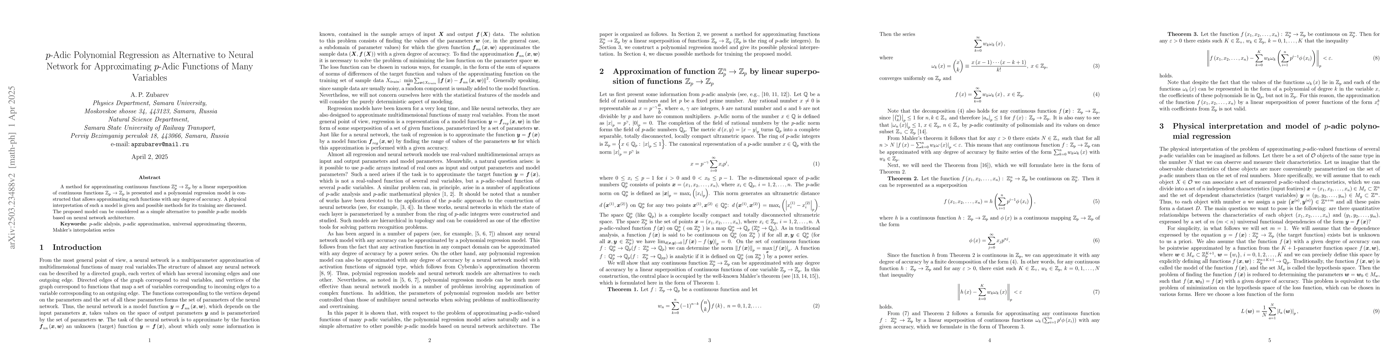 Researchers propose a $p$-adic polynomial regression model as an alternative to neural networks for approximating functions of many variables, offering a simpler approach with potential physical interpretations.