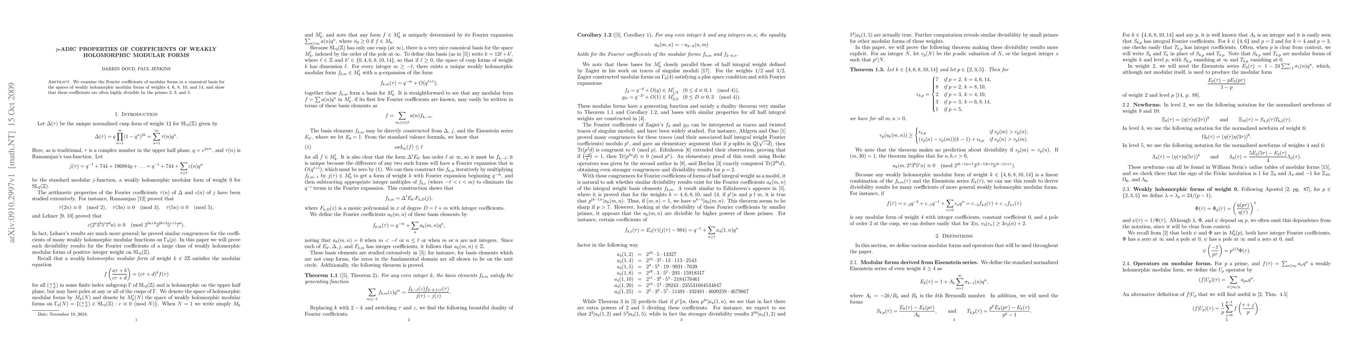 Summary: This paper investigates the $p$-adic properties of Fourier coefficients in weakly holomorphic modular forms of specific weights, revealing significant divisibility by the primes 2, 3, and 5.