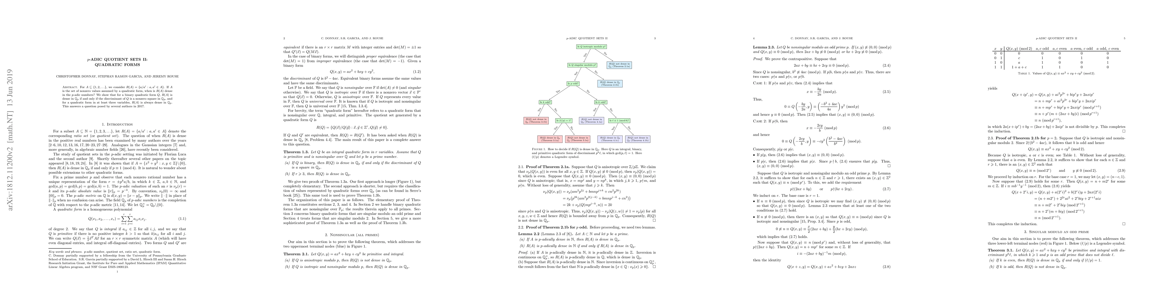 For $A \subseteq \{1,2,\ldots\}$, we consider $R(A) = \{a/a' : a,a' \in A\}$. If $A$ is the set of nonzero values assumed by a quadratic form, when is $R(A)$ dense in the $p$-adic numbers? We show that for a binary quadratic form $Q$, $R(A)$ is dense in $\mathbb{Q}_{p}$ if and only if the discriminant of $Q$ is a nonzero square in $\mathbb{Q}_{p}$, and for a quadratic form in at least three variables, $R(A)$ is always dense in $\mathbb{Q}_{p}$. This answers a question posed by several authors in 2017.