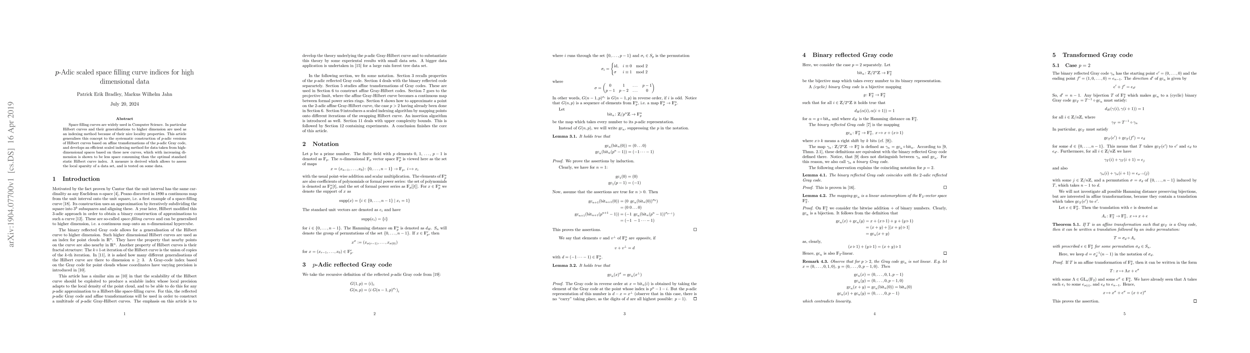 Space filling curves are widely used in Computer Science. In particular Hilbert curves and their generalisations to higher dimension are used as an indexing method because of their nice locality properties. This article generalises this concept to the systematic construction of p-adic versions of Hilbert curves based on affine transformations of the p-adic Gray code, and develops an efficient scaled indexing method for data taken from high-dimensional spaces based on these new curves, which with increasing dimension is shown to be less space consuming than the optimal standard static Hilbert curve index. A measure is derived which allows to assess the local sparsity of a data set, and is tested on some data.