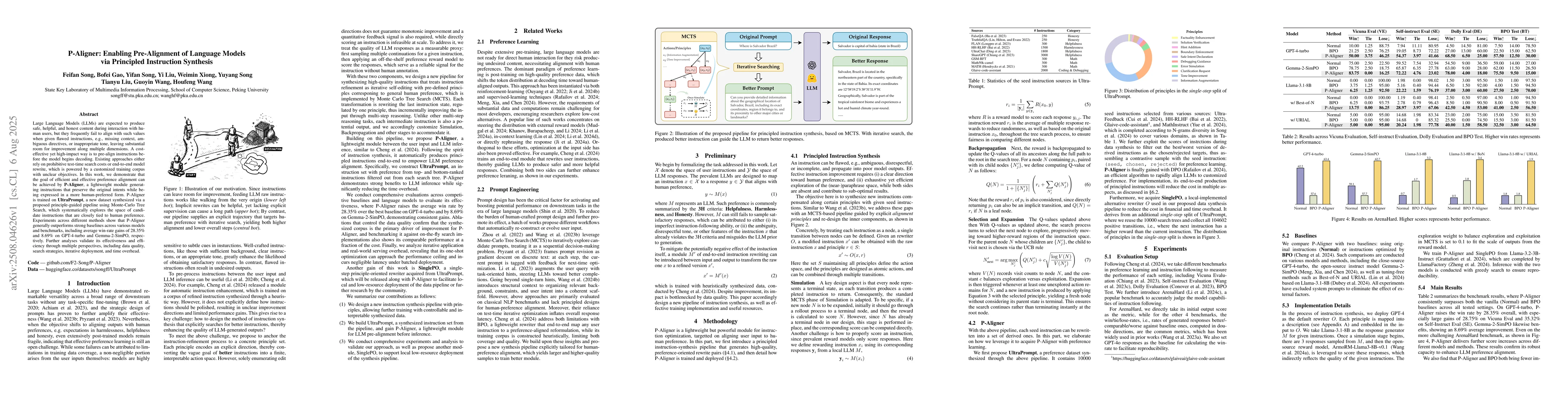 Large Language Models (LLMs) are expected to produce safe, helpful, and honest content during interaction with human users, but they frequently fail to align with such values when given flawed instructions, e.g., missing context, ambiguous directives, or inappropriate tone, leaving substantial room for improvement along multiple dimensions. A cost-effective yet high-impact way is to pre-align instructions before the model begins decoding. Existing approaches either rely on prohibitive test-time search costs or end-to-end model rewrite, which is powered by a customized training corpus with unclear objectives. In this work, we demonstrate that the goal of efficient and effective preference alignment can be achieved by P-Aligner, a lightweight module generating instructions that preserve the original intents while being expressed in a more human-preferred form. P-Aligner is trained on UltraPrompt, a new dataset synthesized via a proposed principle-guided pipeline using Monte-Carlo Tree Search, which systematically explores the space of candidate instructions that are closely tied to human preference. Experiments across different methods show that P-Aligner generally outperforms strong baselines across various models and benchmarks, including average win-rate gains of 28.35% and 8.69% on GPT-4-turbo and Gemma-2-SimPO, respectively. Further analyses validate its effectiveness and efficiency through multiple perspectives, including data quality, search strategies, iterative deployment, and time overhead.