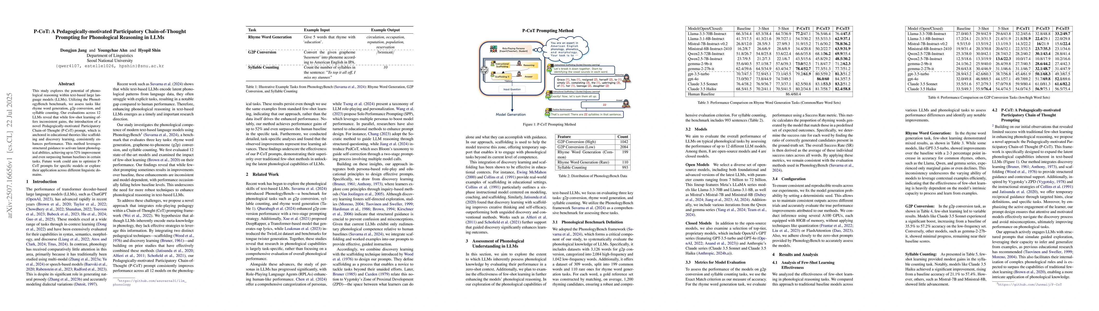 This study explores the potential of phonological reasoning within text-based large language models (LLMs). Utilizing the PhonologyBench benchmark, we assess tasks like rhyme word generation, g2p conversion, and syllable counting. Our evaluations across 12 LLMs reveal that while few-shot learning offers inconsistent gains, the introduction of a novel Pedagogically-motivated Participatory Chain-of-Thought (P-CoT) prompt, which is anchored in educational theories like scaffolding and discovery learning, consistently enhances performance. This method leverages structured guidance to activate latent phonological abilities, achieving up to 52% improvement and even surpassing human baselines in certain tasks. Future work could aim to optimize P-CoT prompts for specific models or explore their application across different linguistic domains.