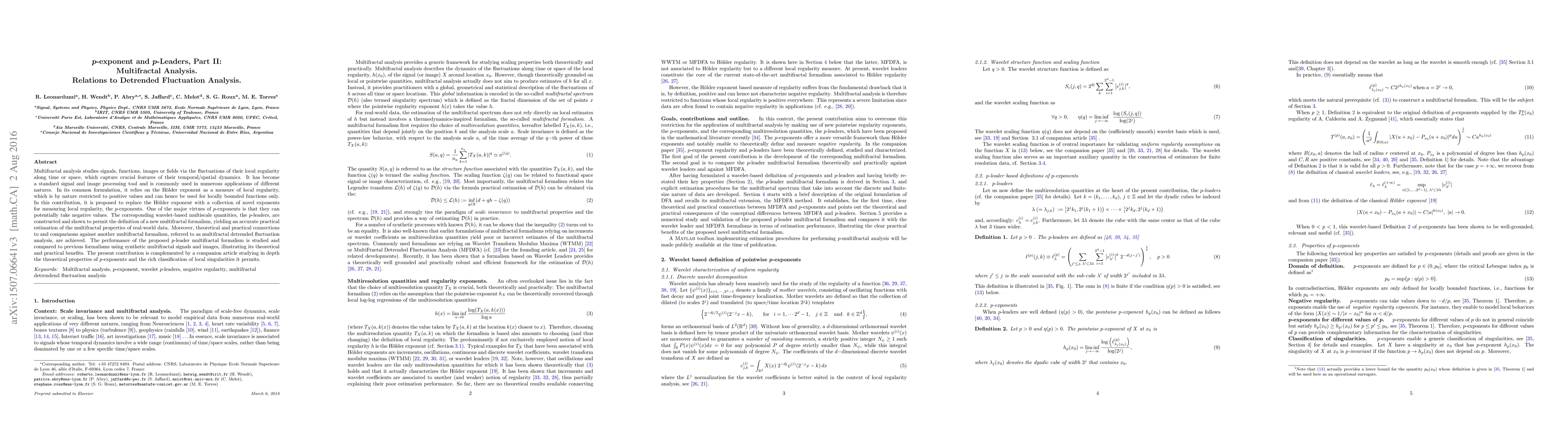 The research introduces $p$-exponents and $p$-leaders as novel exponents for measuring local regularity, extending multifractal analysis beyond positive values. It proposes a new multifractal formalism based on $p$-leaders and compares it to the multifractal detrended fluctuation analysis (MFDFA).