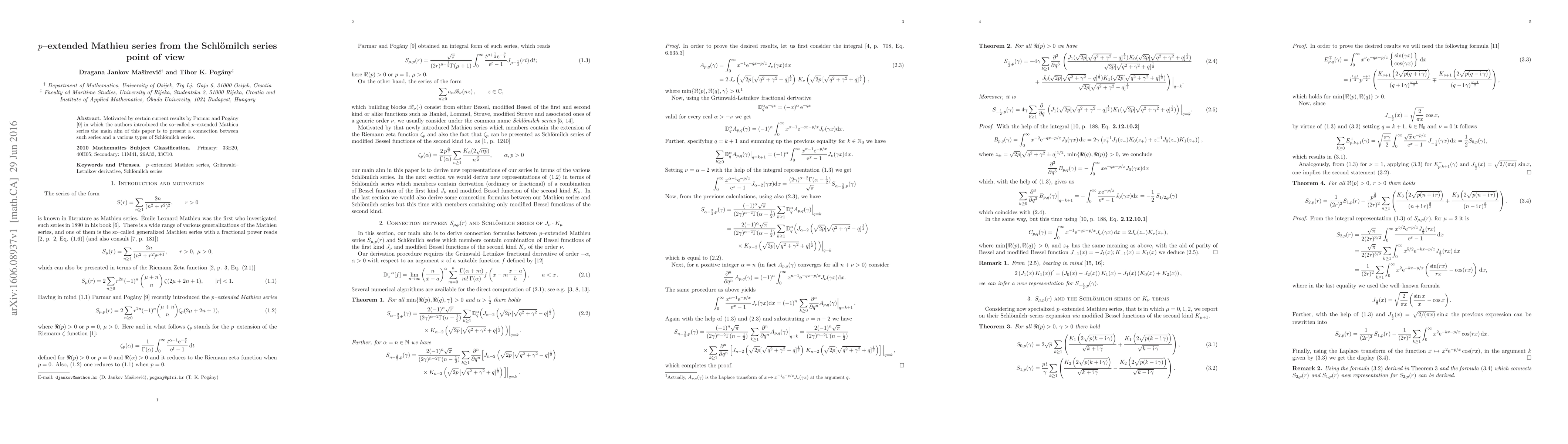 Motivated by certain current results by Parmar and Pog\'any [9] in which the authors introduced the so-called $p$-extended Mathieu series the main aim of this paper is to present a connection between such series and a various types of Schl\"omilch series.