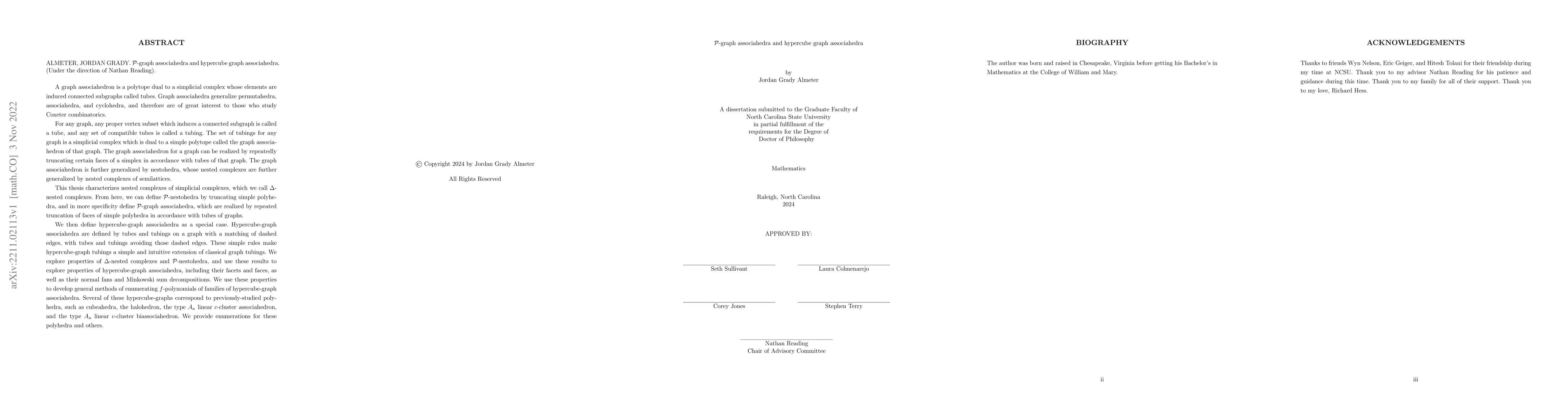 A graph associahedron is a polytope dual to a simplicial complex whose elements are induced connected subgraphs called tubes. Graph associahedra generalize permutahedra, associahedra, and cyclohedra, and therefore are of great interest to those who study Coxeter combinatorics. This thesis characterizes nested complexes of simplicial complexes, which we call $\Delta$-nested complexes. From here, we can define P-nestohedra by truncating simple polyhedra, and in more specificity define P-graph associahedra, which are realized by repeated truncation of faces of simple polyhedra in accordance with tubes of graphs. We then define hypercube-graph associahedra as a special case. Hypercube-graph associahedra are defined by tubes and tubings on a graph with a matching of dashed edges, with tubes and tubings avoiding those dashed edges. These simple rules make hypercube-graph tubings a simple and intuitive extension of classical graph tubings. We explore properties of $\Delta$-nested complexes and P-nestohedra, and use these results to explore properties of hypercube-graph associahedra, including their facets and faces, as well as their normal fans and Minkowski sum decompositions. We use these properties to develop general methods of enumerating $f$-polynomials of families of hypercube-graph associahedra. Several of these hypercube-graphs correspond to previously-studied polyhedra, such as cubeahedra, the halohedron, the type $A_n$ linear $c$-cluster associahedron, and the type $A_n$ linear $c$-cluster biassociahedron. We provide enumerations for these polyhedra and others.
