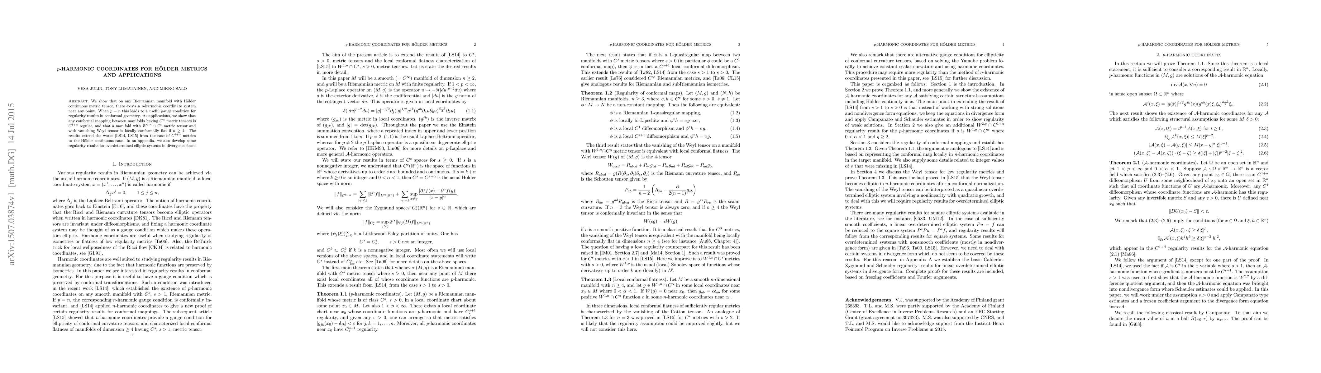 The paper develops new techniques for establishing the existence of p-harmonic coordinates under weaker regularity assumptions on the metric tensor.