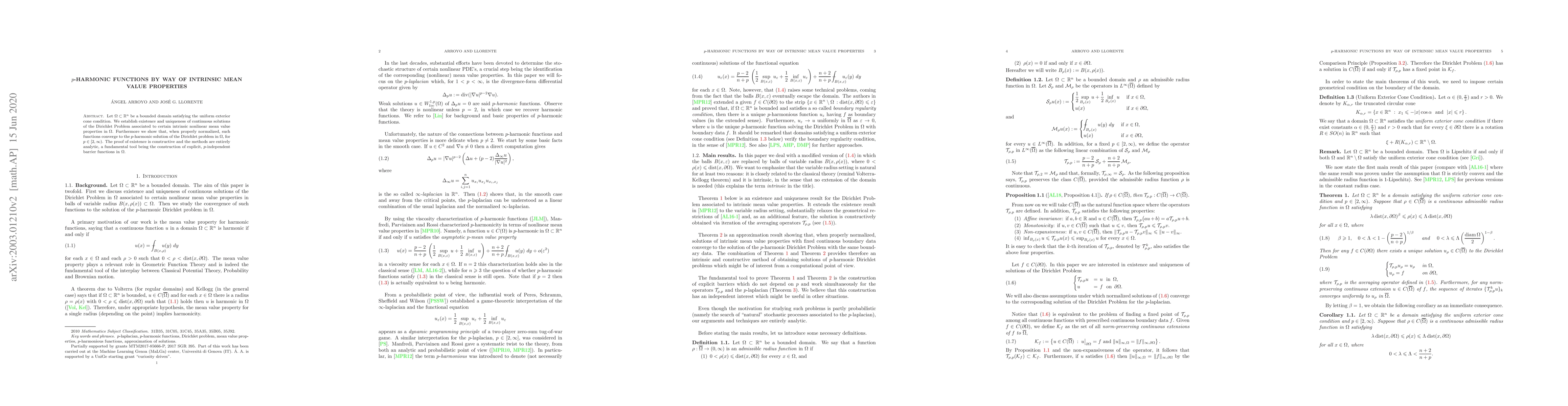Let $\Omega\subset\mathbb{R}^n$ be a bounded domain satisfying the uniform exterior cone condition. We establish existence and uniqueness of continuous solutions of the Dirichlet Problem associated to certain intrinsic nonlinear mean value properties in $\Omega $. Furthermore we show that, when properly normalized, such functions converge to the $p$-harmonic solution of the Dirichlet problem in $\Omega$, for $p\in[2,\infty)$. The proof of existence is constructive and the methods are entirely analytic, a fundamental tool being the construction of explicit, $p$-independent barrier functions in $\Omega$.