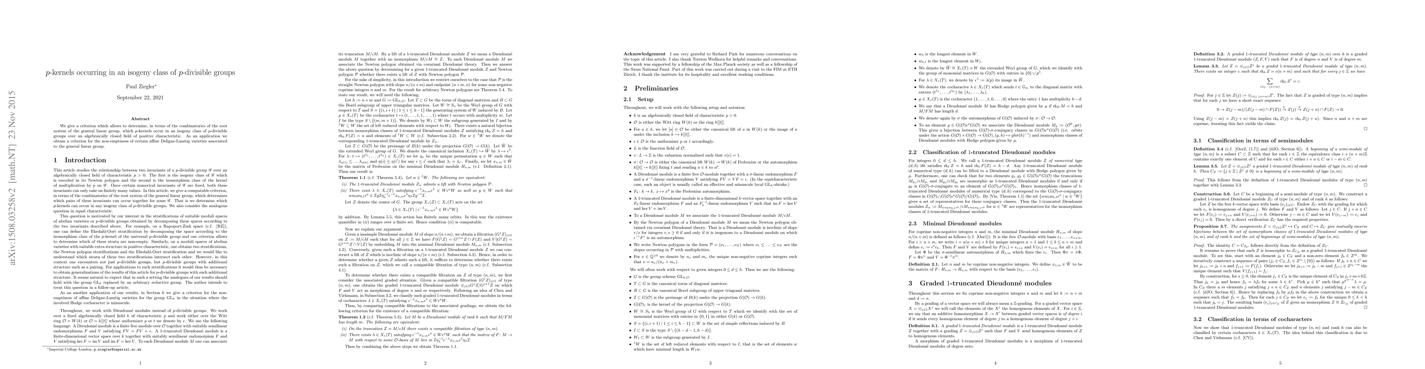 Researchers developed a criterion to determine which $p$-kernels occur in an isogeny class of $p$-divisible groups over algebraically closed fields, linking it to the combinatorics of the general linear group.