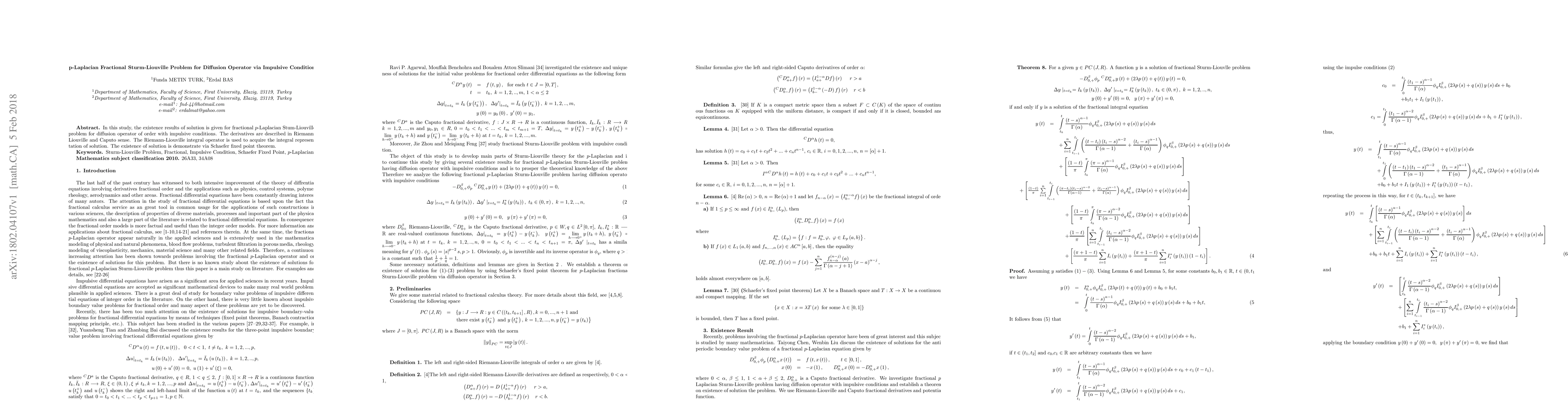 In this study, the existence results of solution is given for fractional p-Laplacian Stum-Liouville problem for diffusion operator of order with impulsive conditions. The derivatives are described in Riemann-Liouville and Caputo sense. The Riemann-Liouville integral operator is used to acquire the integral representation of solution. The existence of solution is demonstrate via Schaefer fixed point theorem.
