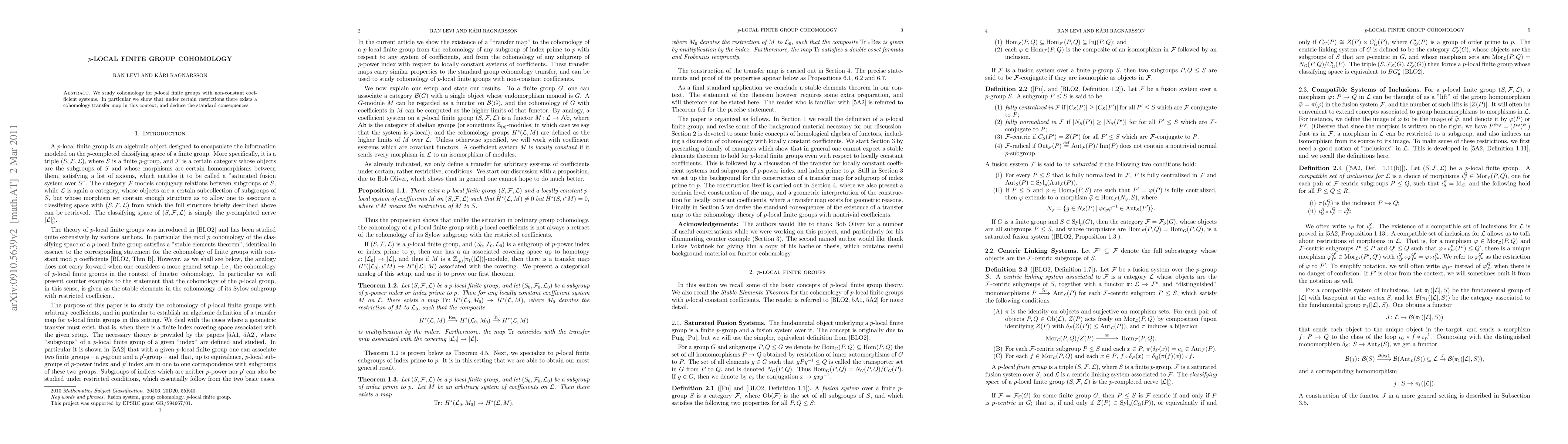 The paper studies cohomology for $p$-local finite groups with non-constant coefficient systems, demonstrating the existence of a cohomology transfer map under certain restrictions and deriving standard consequences.