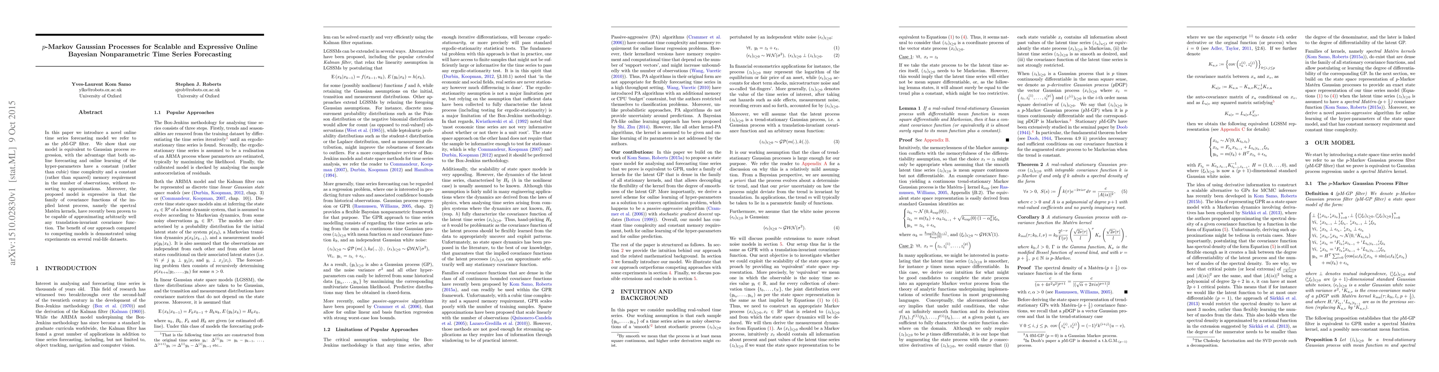 A new online time series forecasting model called pM-GP filter is introduced, offering constant time complexity for online forecasting and hyperparameter learning, and expressiveness through spectral Matern kernels.