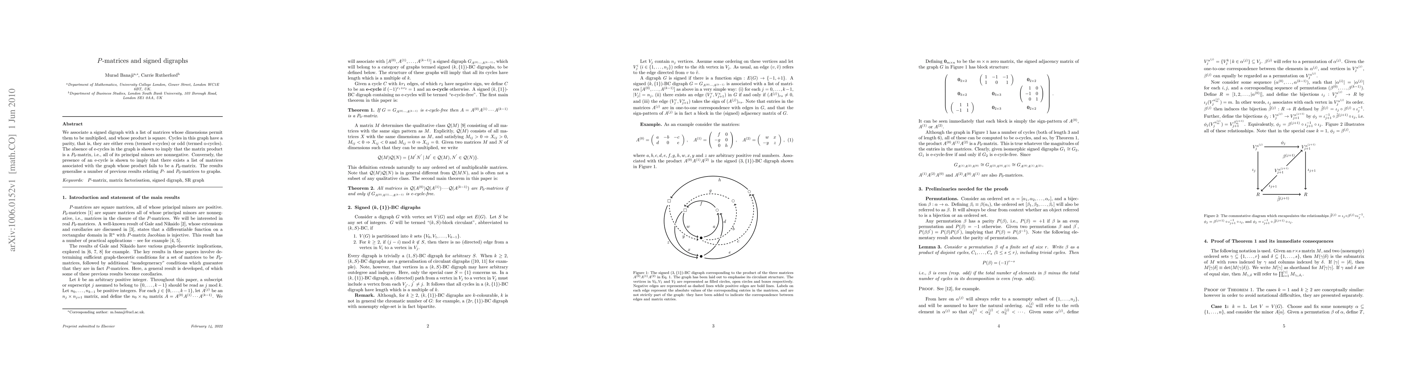 A graph's cycles determine whether its associated matrix product is a P0-matrix (all principal minors nonnegative), with even cycles leading to non-negative products and odd cycles potentially resulting in negative products.