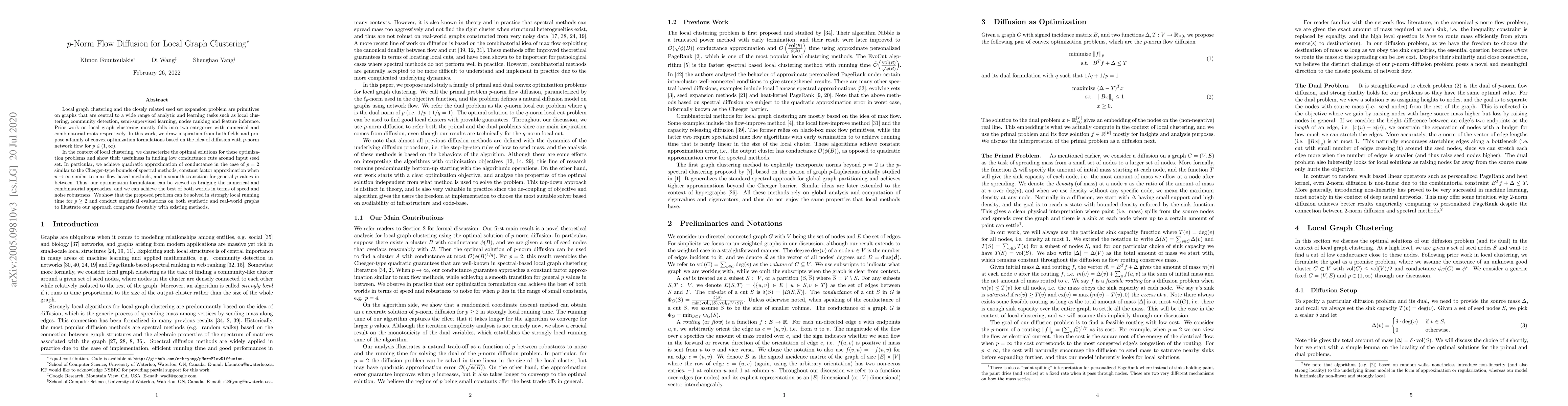 This paper proposes a family of convex optimization formulations based on $p$-norm flow diffusion for local graph clustering, bridging numerical and combinatorial approaches. It achieves quadratic approximation for $p=2$ and constant factor approximation as $p\rightarrow\infty$, demonstrating strong local running time and favorable empirical results compared to existing methods.