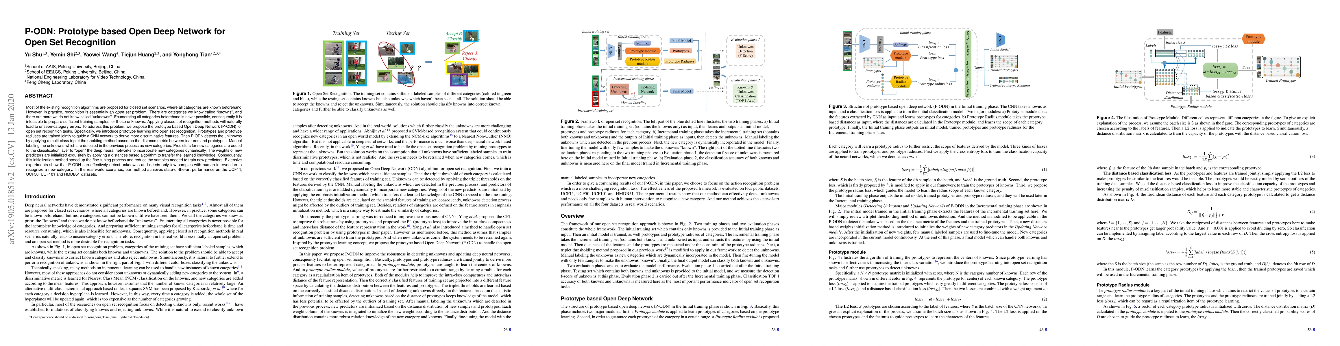 The paper proposes P-ODN, a prototype based Open Deep Network for open set recognition, which introduces prototype learning to dynamically detect and classify unknown categories with minimal human intervention. P-ODN achieves state-of-the-art performance on several datasets by effectively identifying unknowns and requiring few samples to train new predictors.