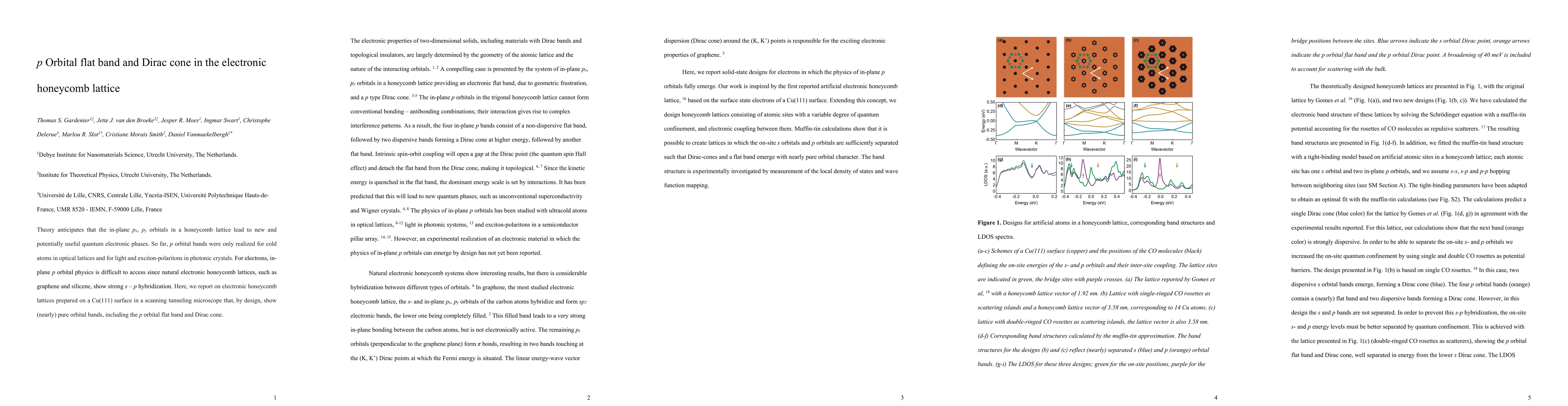 This paper reports the realization of nearly pure p orbital bands in electronic honeycomb lattices on a Cu(111) surface via scanning tunneling microscopy, revealing a p orbital flat band and Dirac cone, which are challenging to observe in natural lattices due to strong s-p hybridization.