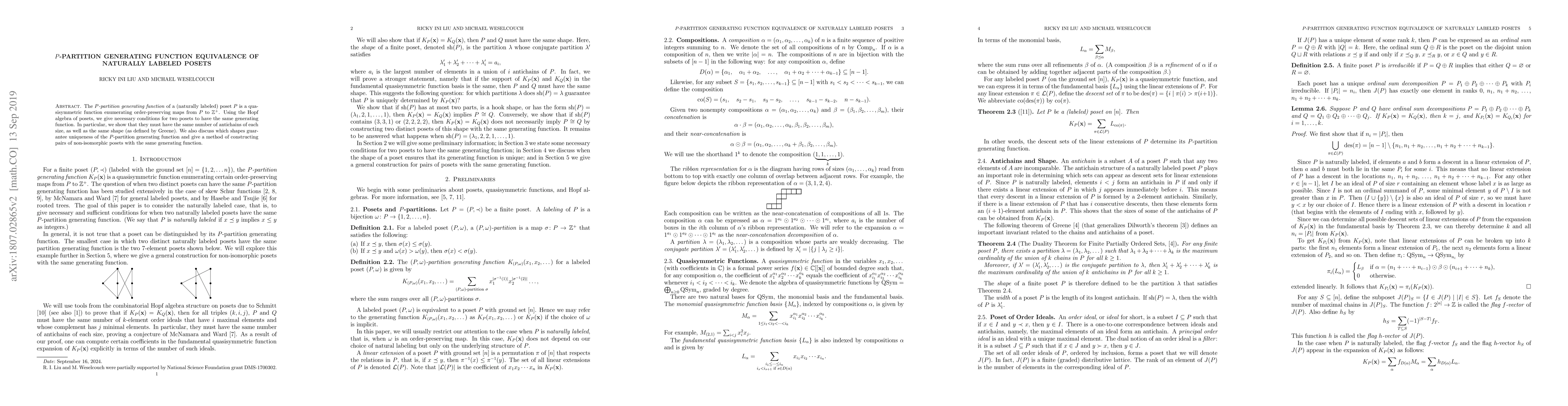 This research paper establishes necessary conditions for two naturally labeled posets to have the same $P$-partition generating function, focusing on antichains of each size and shape, with implications for constructing non-isomorphic posets with the same generating function.