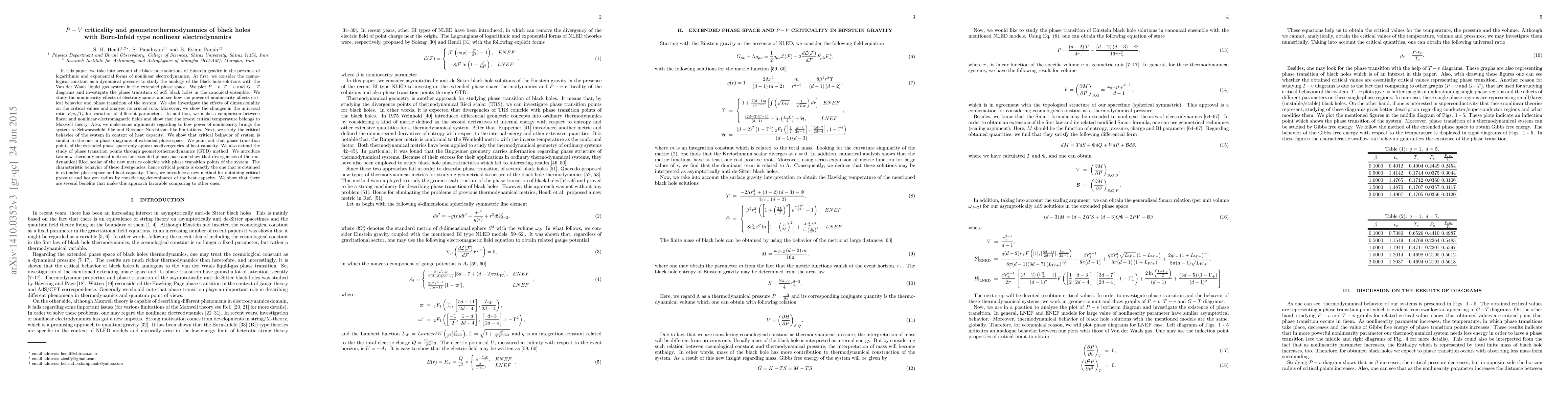 In this paper, we take into account the black hole solutions of Einstein gravity with logarithmic and exponential forms of nonlinear electrodynamics. We consider $\Lambda$ as a dynamical pressure to study the analogy of the black holes with the Van der Waals system. We plot P-v, T-v and G-T diagrams and investigate the phase transition of adS black holes in the canonical ensemble. We study the nonlinearity effects of electrodynamics and see how the power of nonlinearity affects critical behavior. We also investigate the effects of dimensionality on the critical values and analyze its crucial role. Moreover, we show the changes in the universal ratio P_{c}v_{c}/T_{c} for variation of different parameters. In addition, we make a comparison between linear and nonlinear electrodynamics and show that the lowest critical temperature belongs to Maxwell theory. Also, we make some arguments regarding to how power of nonlinearity brings the system to Schwarzschild-like and Reissner-Nordstrom-like limitations. Next, we study the critical behavior in context of heat capacity. We show that critical behavior of system is similar to one in phase diagrams of extended phase space. We point out that phase transition points of the extended phase space only appear as divergencies of heat capacity. We also extend the study of phase transitions through GTD method. We introduce two new metrics and show that divergencies of TRS of the new metrics coincide with phase transitions. The characteristic behavior of these divergencies, hence critical points is exactly the one that is obtained in extended phase space and heat capacity. We also introduce a new method for obtaining critical pressure and horizon radius by considering denominator of the heat capacity. We show that there are several benefits that make this approach favorable comparing to other ones.