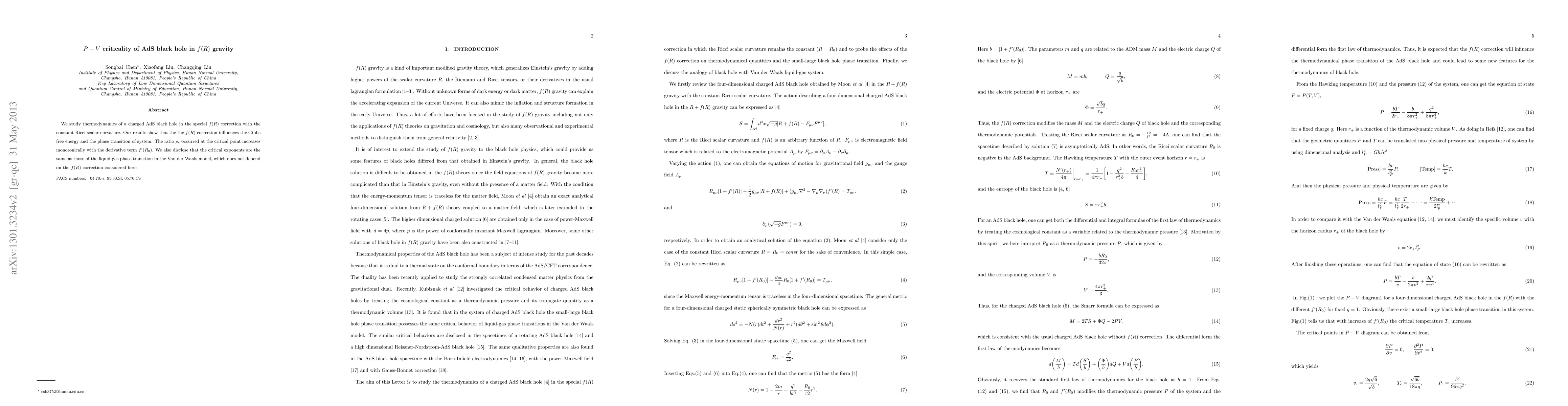 We study thermodynamics of a charged AdS black hole in the special $f(R)$ correction with the constant Ricci scalar curvature. Our results show that the the $f(R)$ correction influences the Gibbs free energy and the phase transition of system. The ratio $\rho_c$ occurred at the critical point increases monotonically with the derivative term $f'(R_0)$. We also disclose that the critical exponents are the same as those of the liquid-gas phase transition in the Van der Waals model, which does not depend on the $f(R)$ correction considered here.