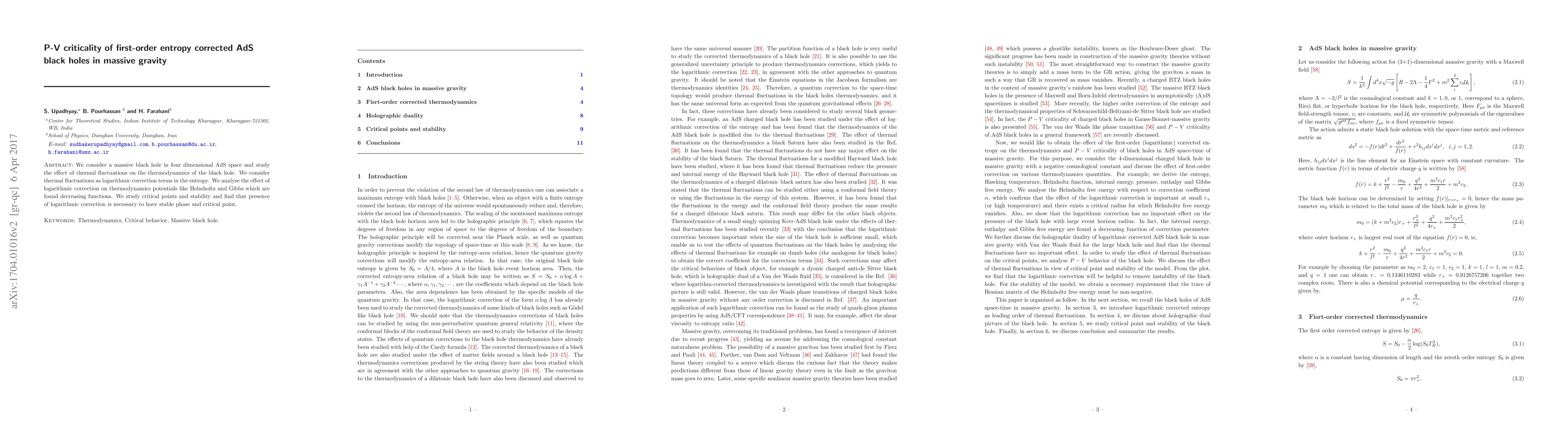This research paper studies how thermal fluctuations affect a massive black hole in AdS space, finding that logarithmic correction terms are necessary for stable phase transitions and critical points.