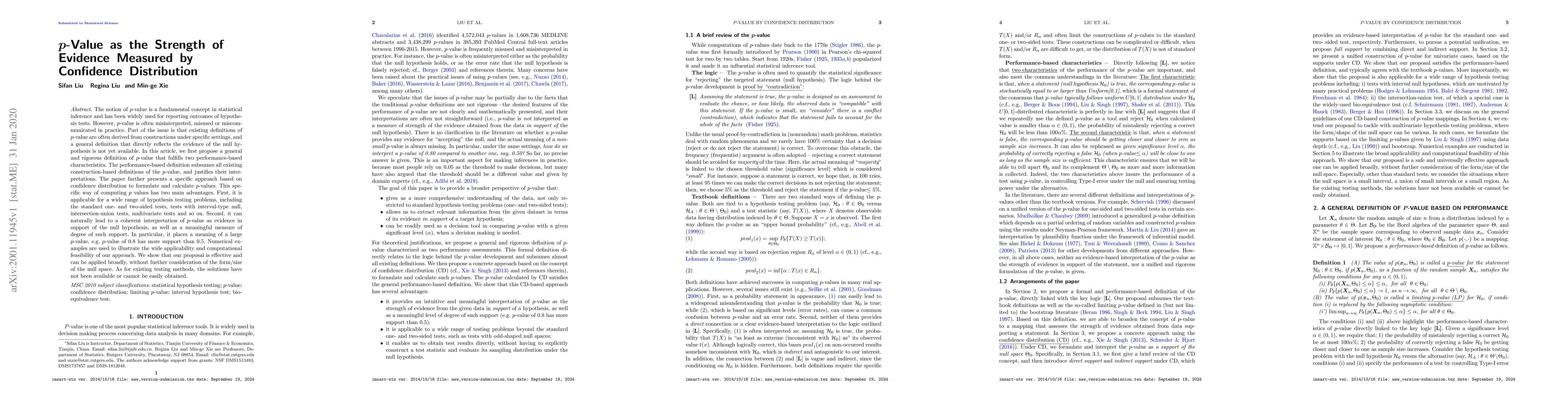 The notion of p-value is a fundamental concept in statistical inference and has been widely used for reporting outcomes of hypothesis tests. However, p-value is often misinterpreted, misused or miscommunicated in practice. Part of the issue is that existing definitions of p-value are often derived from constructions under specific settings, and a general definition that directly reflects the evidence of the null hypothesis is not yet available. In this article, we first propose a general and rigorous definition of p-value that fulfills two performance-based characteristics. The performance-based definition subsumes all existing construction-based definitions of the p-value, and justifies their interpretations. The paper further presents a specific approach based on confidence distribution to formulate and calculate p-values. This specific way of computing p values has two main advantages. First, it is applicable for a wide range of hypothesis testing problems, including the standard one- and two-sided tests, tests with interval-type null, intersection-union tests, multivariate tests and so on. Second, it can naturally lead to a coherent interpretation of p-value as evidence in support of the null hypothesis, as well as a meaningful measure of degree of such support. In particular, it places a meaning of a large p-value, e.g. p-value of 0.8 has more support than 0.5. Numerical examples are used to illustrate the wide applicability and computational feasibility of our approach. We show that our proposal is effective and can be applied broadly, without further consideration of the form/size of the null space. As for existing testing methods, the solutions have not been available or cannot be easily obtained.