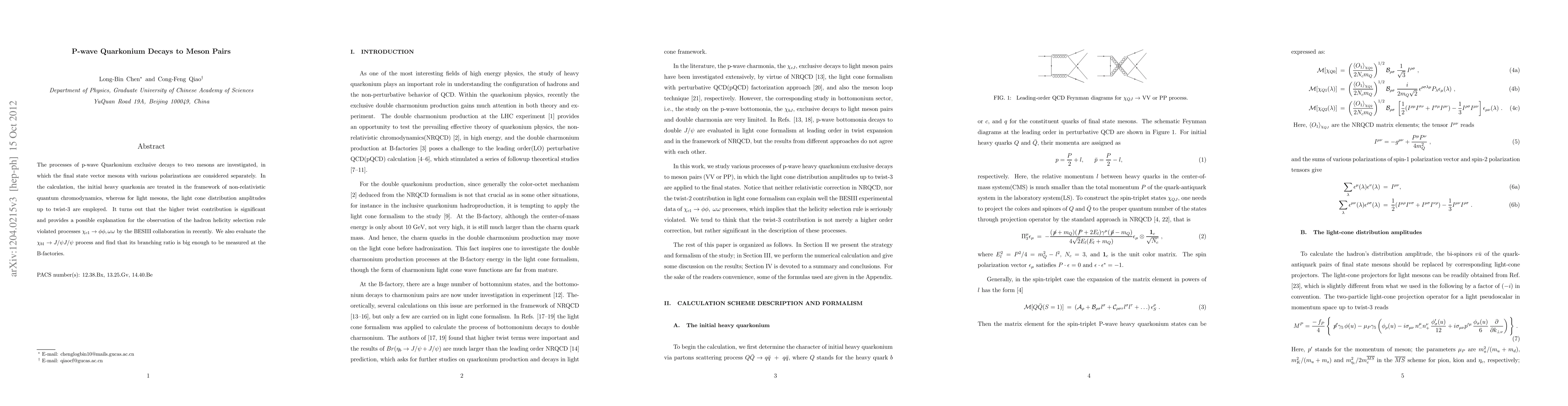 The processes of P-wave Quarkonium exclusive decays to two mesons are investigated, in which the final state vector mesons with various polarizations are considered separately. In the calculation, the initial heavy quarkonia are treated in the framework of non-relativistic quantum chromodynamics, whereas for light mesons, the light cone distribution amplitudes up to twist-3 are employed. It turns out that the higher twist contribution is significant and provides a possible explanation for the observation of the hadron helicity selection rule violated processes $\chi_{c1}\rightarrow \phi\phi,\omega\omega$ by the BESIII collaboration in recently. We also evaluate the $\chi_{b1}\to J/\psi J/\psi$ process and find that its branching ratio is big enough to be measured at the B-factories.