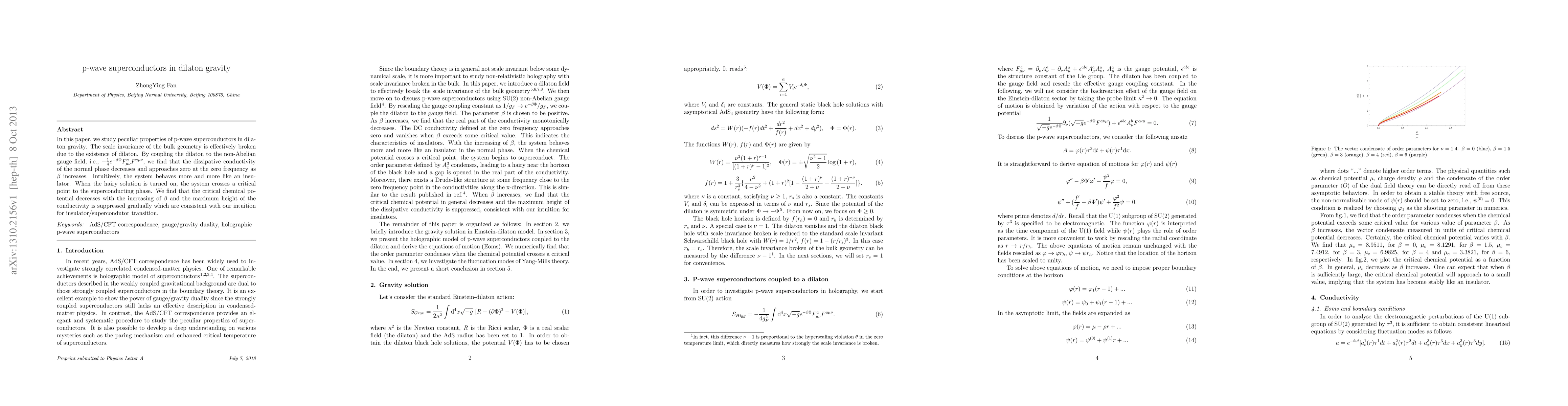 In this paper, we study peculiar properties of p-wave superconductors in dilaton gravity. The scale invariance of the bulk geometry is effectively broken due to the existence of dilaton. By coupling the dilaton to the non-Abelian gauge field, i.e., $-\frac14 e^{-\beta \Phi} F^a_{\mu\nu}F^{a\mu\nu}$, we find that the dissipative conductivity of the normal phase decreases and approaches zero at the zero frequency as $\beta$ increases. Intuitively, the system behaves more and more like an insulator. When the hairy solution is turned on, the system crosses a critical point to the superconducting phase. We find that the critical chemical potential decreases with the increasing of $\beta$ and the maximum height of the conductivity is suppressed gradually which are consistent with our intuition for insulator/supercondutor transition.