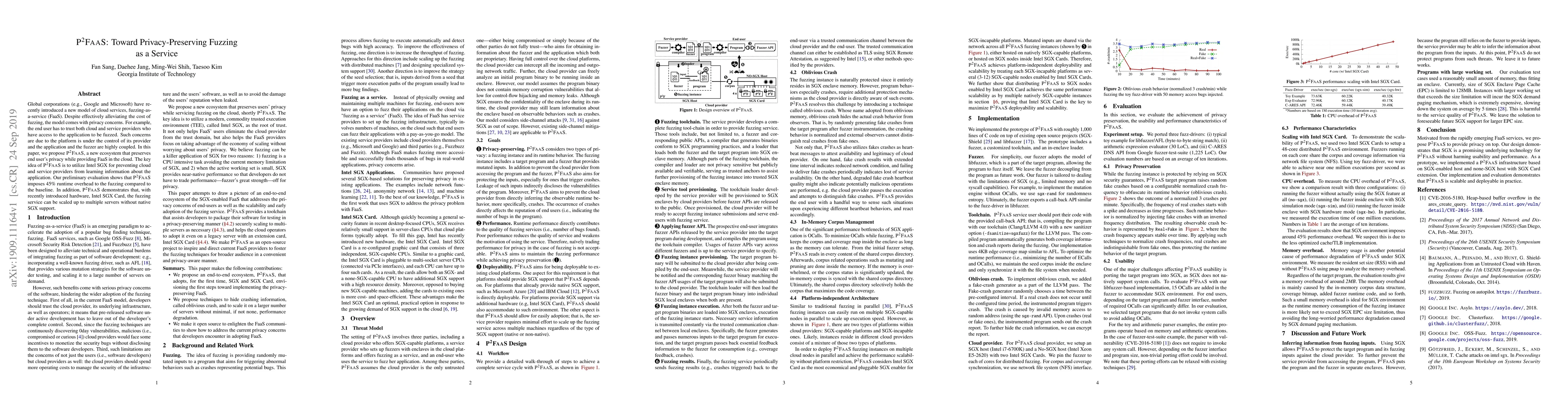 Researchers propose P2FaaS, a cloud-based fuzzing service that preserves user privacy using Intel SGX, with 45% runtime overhead, to address concerns of trusting multiple parties.