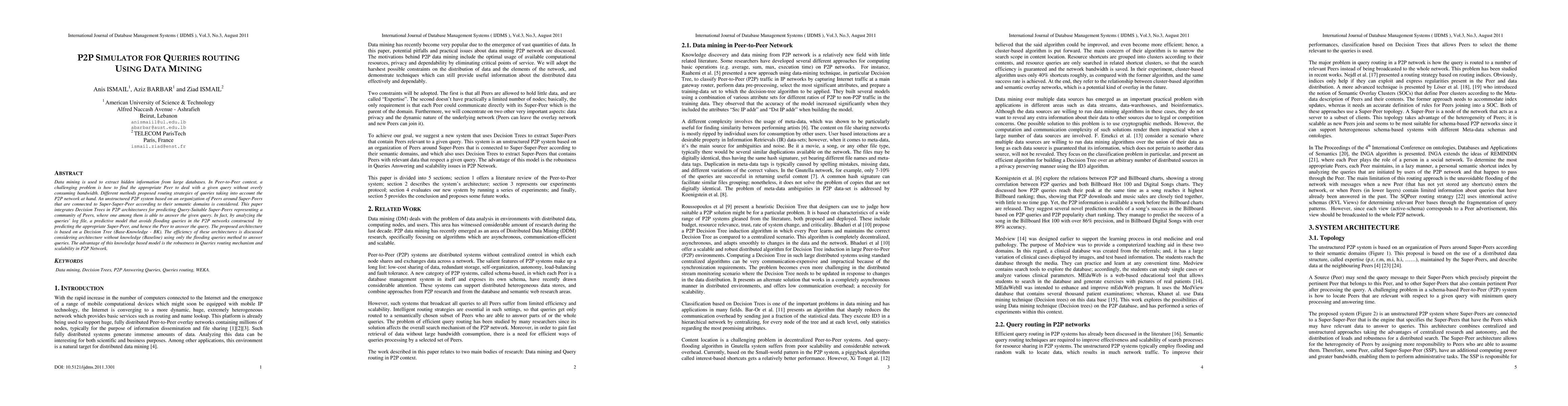 This paper proposes a P2P simulator that uses Decision Trees to predict the most appropriate Super-Peer for query routing, minimizing bandwidth consumption by avoiding flooding methods. The approach demonstrates enhanced robustness and scalability compared to baseline flooding methods.