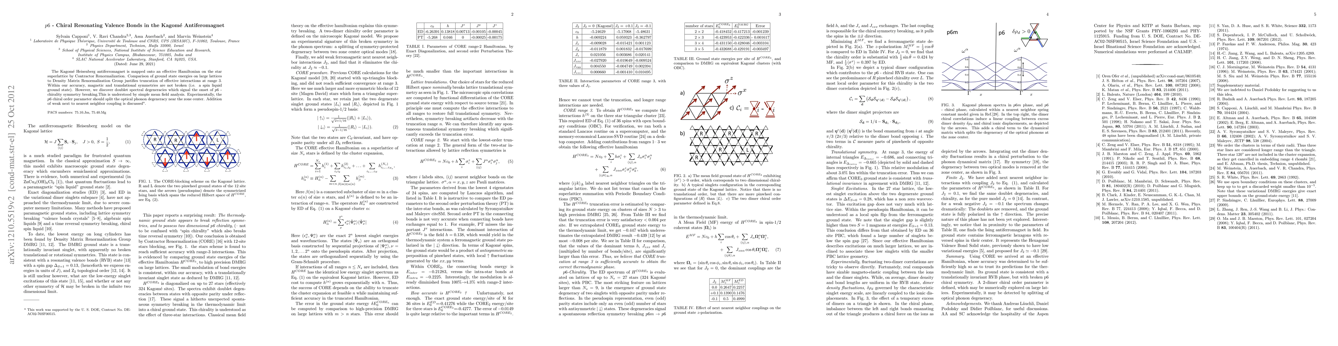The Kagome Heisenberg antiferromagnet is mapped onto an effective Hamiltonian on the star superlattice by Contractor Renormalization. Comparison of ground state energies on large lattices to Density Matrix Renormalization Group justifies truncation of effective interactions at range 3. Within our accuracy, magnetic and translational symmetries are not broken (i.e. a spin liquid ground state). However, we discover doublet spectral degeneracies which signal the onset of p6 - chirality symmetry breaking. This is understood by simple mean field analysis. Experimentally, the p6 chiral order parameter should split the optical phonons degeneracy near the zone center. Addition of weak next to nearest neighbor coupling is discussed.