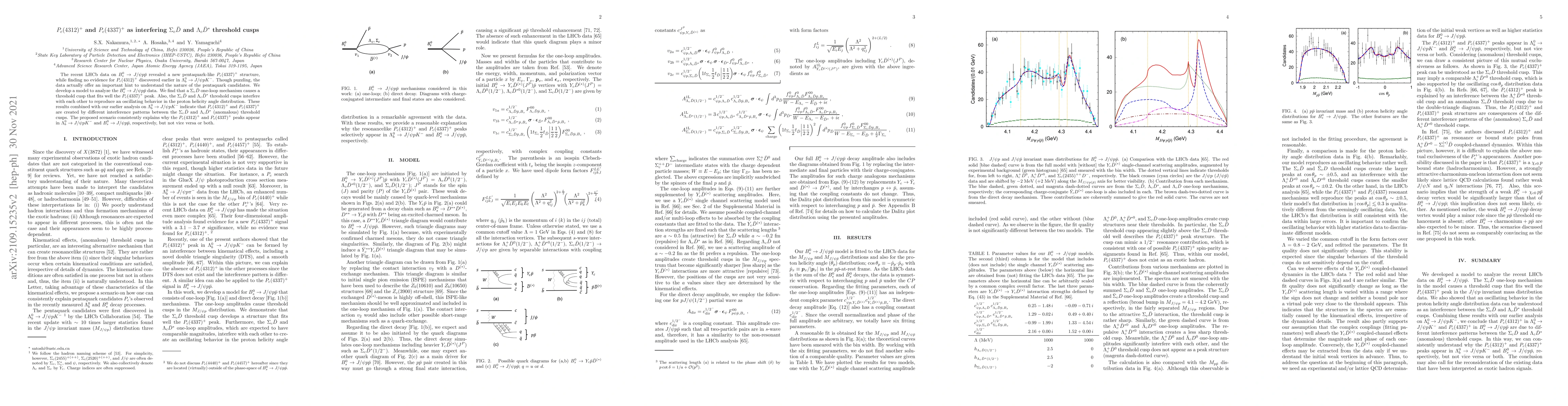 Researchers analyze LHCb data on pentaquark-like particles and propose a model explaining their creation through interference patterns between threshold cusps in $B_s^0$ and $eta_b$ decays.