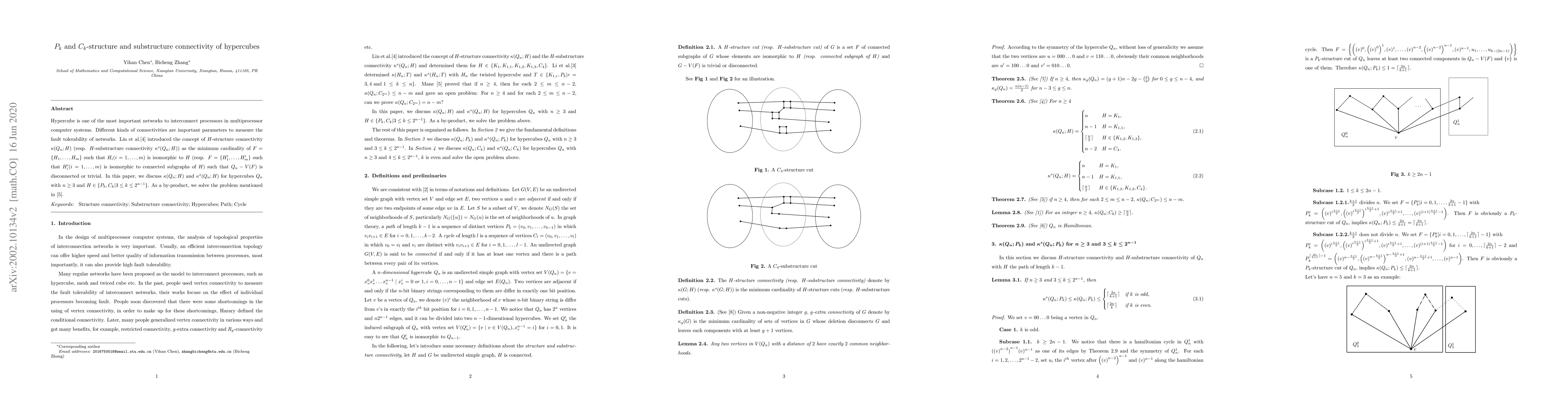 Hypercube is one of the most important networks to interconnect processors in multiprocessor computer systems. Different kinds of connectivities are important parameters to measure the fault tolerability of networks. Lin et al.\cite{LinStructure} introduced the concept of $H$-structure connectivity $\kappa(Q_n;H)$ (resp. $H$-substructure connectivity $\kappa^s(Q_n;H)$) as the minimum cardinality of $F=\{H_1,\dots,H_m\}$ such that $H_i (i=1,\dots,m)$ is isomorphic to $H$ (resp. $F=\{H'_1,\dots,H'_m\}$ such that $H'_i (i=1,\dots,m)$ is isomorphic to connected subgraphs of $H$) such that $Q_n-V(F)$ is disconnected or trivial. In this paper, we discuss $\kappa(Q_n;H)$ and $\kappa^s(Q_n;H)$ for hypercubes $Q_n$ with $n\geq 3$ and $H\in \{P_k,C_k|3\leq k\leq 2^{n-1}\}$. As a by-product, we solve the problem mentioned in \cite{ManeStructure}.