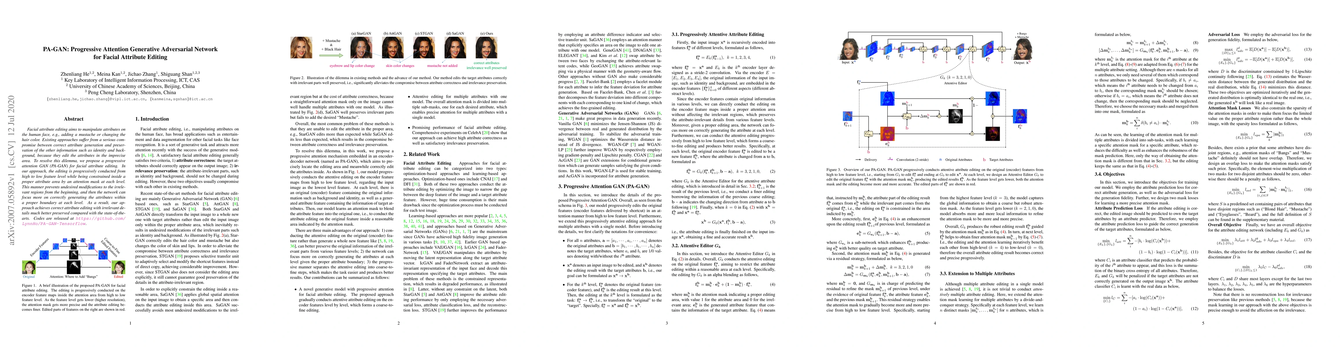 Facial attribute editing aims to manipulate attributes on the human face, e.g., adding a mustache or changing the hair color. Existing approaches suffer from a serious compromise between correct attribute generation and preservation of the other information such as identity and background, because they edit the attributes in the imprecise area. To resolve this dilemma, we propose a progressive attention GAN (PA-GAN) for facial attribute editing. In our approach, the editing is progressively conducted from high to low feature level while being constrained inside a proper attribute area by an attention mask at each level. This manner prevents undesired modifications to the irrelevant regions from the beginning, and then the network can focus more on correctly generating the attributes within a proper boundary at each level. As a result, our approach achieves correct attribute editing with irrelevant details much better preserved compared with the state-of-the-arts. Codes are released at https://github.com/LynnHo/PA-GAN-Tensorflow.