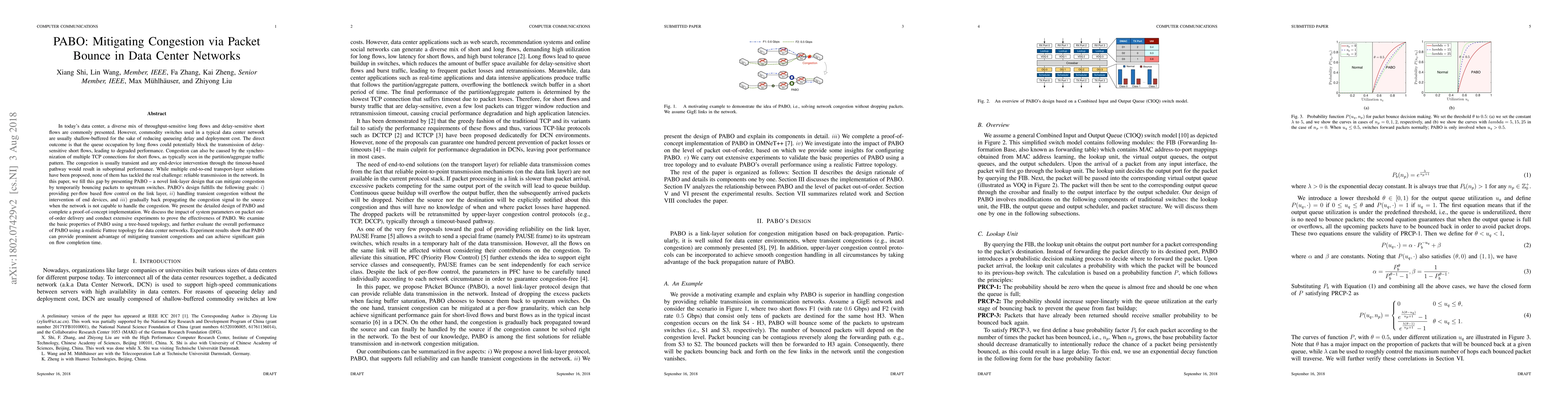 In today's data center, a diverse mix of throughput-sensitive long flows and delay-sensitive short flows are commonly presented in shallow-buffered switches. Long flows could potentially block the transmission of delay-sensitive short flows, leading to degraded performance. Congestion can also be caused by the synchronization of multiple TCP connections for short flows, as typically seen in the partition/aggregate traffic pattern. While multiple end-to-end transport-layer solutions have been proposed, none of them have tackled the real challenge: reliable transmission in the network. In this paper, we fill this gap by presenting PABO -- a novel link-layer design that can mitigate congestion by temporarily bouncing packets to upstream switches. PABO's design fulfills the following goals: i) providing per-flow based flow control on the link layer, ii) handling transient congestion without the intervention of end devices, and iii) gradually back propagating the congestion signal to the source when the network is not capable to handle the congestion.Experiment results show that PABO can provide prominent advantage of mitigating transient congestions and can achieve significant gain on end-to-end delay.