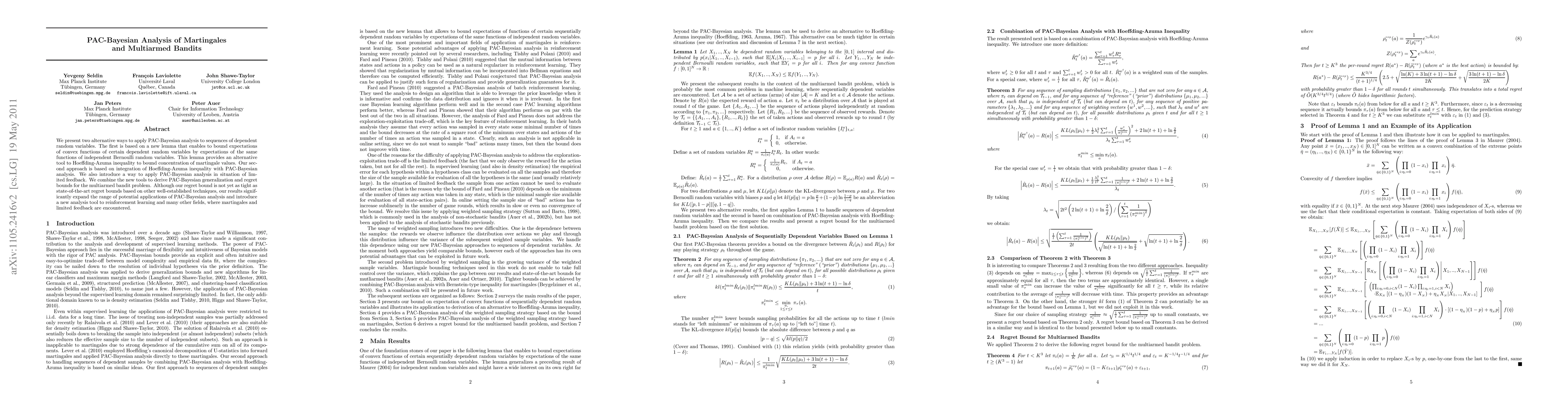 This paper presents novel PAC-Bayesian analysis techniques for martingales and multiarmed bandits, introducing a new lemma to bound expectations of convex functions and integrating Hoeffding-Azuma inequality with PAC-Bayesian analysis, thereby expanding its applicability in reinforcement learning and other fields with dependent random variables and limited feedback.